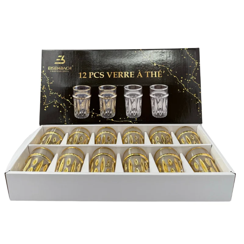 O Eisenbach EB-GLS12G 12-Piece Tea Glass Set com detalhes em ouro é uma adição elegante à coleção de qualquer amante de chá. Concebido para servir chá com estilo, este conjunto é perfeito para 12 pessoas, tornando-o ideal para reuniões familiares, ocasiões especiais ou uso quotidiano. A construção em vidro transparente realça a beleza do seu chá, enquanto os pormenores dourados refinados realçam a estética luxuosa da sua mesa. Quer esteja a desfrutar de uma cerimónia tradicional do chá turco ou de uma simples pausa para o chá da tarde, estes copos de chá dão um toque de sofisticação a cada gole.