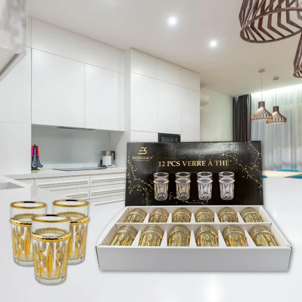 O Eisenbach EB-GLS12G 12-Piece Tea Glass Set com detalhes em ouro é uma adição elegante à coleção de qualquer amante de chá. Concebido para servir chá com estilo, este conjunto é perfeito para 12 pessoas, tornando-o ideal para reuniões familiares, ocasiões especiais ou uso quotidiano. A construção em vidro transparente realça a beleza do seu chá, enquanto os pormenores dourados refinados realçam a estética luxuosa da sua mesa. Quer esteja a desfrutar de uma cerimónia tradicional do chá turco ou de uma simples pausa para o chá da tarde, estes copos de chá dão um toque de sofisticação a cada gole.