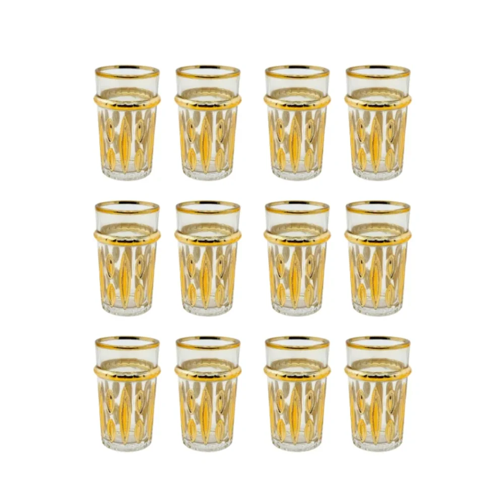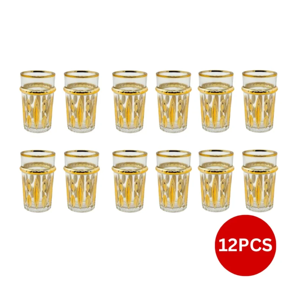 Fabricadas em vidro de alta qualidade, estas chávenas de chá são duráveis e leves, garantindo uma aderência confortável enquanto desfruta das suas bebidas favoritas. O design clássico, combinado com um acabamento dourado, reflecte a rica herança cultural do serviço de chá turco, mantendo uma elegância moderna. O tamanho generoso de cada copo permite-lhe apreciar plenamente os sabores da sua mistura de chá escolhida, quer seja uma infusão de ervas calmantes, um chá preto aromático ou um chá verde refrescante. O apelo intemporal deste conjunto torna-o uma combinação perfeita para vários bules de chá e tabuleiros de servir, permitindo-lhe criar uma apresentação de chá deslumbrante para os seus convidados.