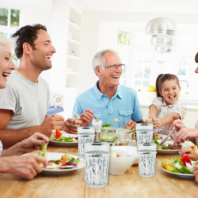 - Design clássico com detalhes em prata – Cada copo é adornado com um intrincado detalhe prateado que aumenta seu apelo visual. A elegante guarnição de prata reflete a luz lindamente, adicionando um toque de luxo e requinte a cada gole que você toma.