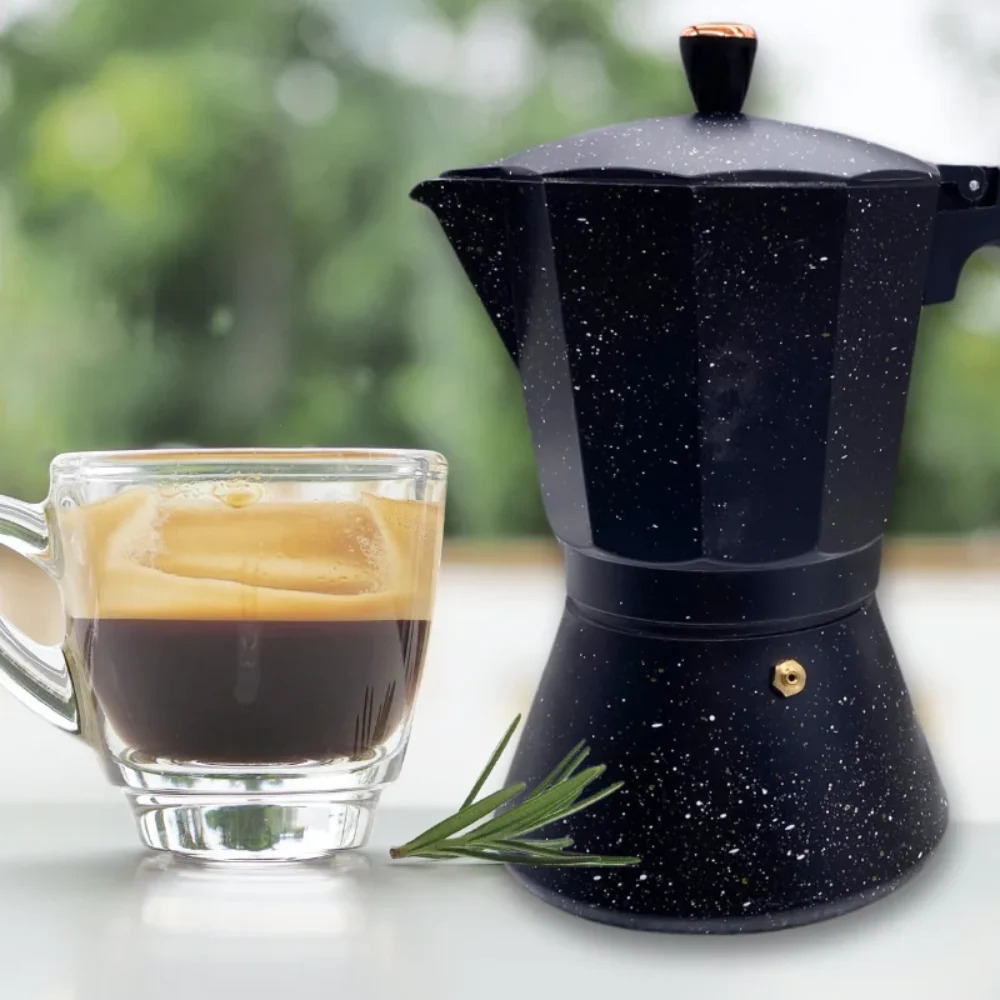 - Espresso Italiano Clássico – Projetado especificamente para preparar um espresso rico e tradicional no estilo italiano, esta cafeteira moka usa o método de preparo a vapor de alta pressão para extrair um creme espesso e saboroso. Esse recurso permite que você desfrute de espressos, lattes, cappuccinos e mochas com qualidade de café em casa, proporcionando um sabor forte e autêntico.