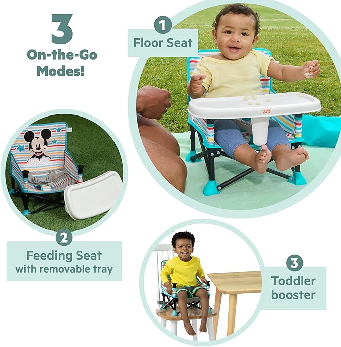 • O Pop ‘N Sit de Bright Starts tem 3 modos: assento de chão, assento para comer e elevador para crianças pequenas