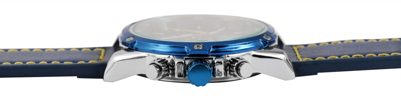O cronógrafo masculino da marca Elite possui movimento de quartzo de alta qualidade. A pulseira de couro genuíno tem 22 mm de largura na alça e pode ser aberta e fechada com uma fivela. O comprimento total do relógio é de 26 cm. A caixa de metal com vidro mineral tem um diâmetro de 45 mm e uma altura de 12 mm. O fundo da caixa é feito de aço inoxidável. O tempo pode ser parado com o cronógrafo e depois lido nos três totalizadores às seis, nove e doze horas. O modelo também possui display de data às três horas. Os ponteiros e índices revestidos com Superluminova facilitam a leitura das horas, mesmo no escuro. Além disso, o relógio masculino tem resistência à água de 3 bar. Outro destaque são as costuras em cores contrastantes na pulseira do relógio. O ponteiro dos segundos com cores coordenadas completa o…