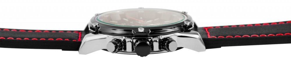 O cronógrafo masculino da marca Elite possui movimento de quartzo de alta qualidade. A pulseira de couro genuíno tem 22 mm de largura na alça e pode ser aberta e fechada com uma fivela. O comprimento total do relógio é de 26 cm. A caixa de metal com vidro mineral tem um diâmetro de 45 mm e uma altura de 12 mm. O fundo da caixa é feito de aço inoxidável. O tempo pode ser parado com o cronógrafo e depois lido nos três totalizadores às seis, nove e doze horas. O modelo também possui display de data às três horas. Os ponteiros e índices revestidos com Superluminova facilitam a leitura das horas, mesmo no escuro. Além disso, o relógio masculino tem resistência à água de 3 bar. Outro destaque são as costuras em cores contrastantes na pulseira do relógio. O ponteiro dos segundos com cores coordenadas completa o…