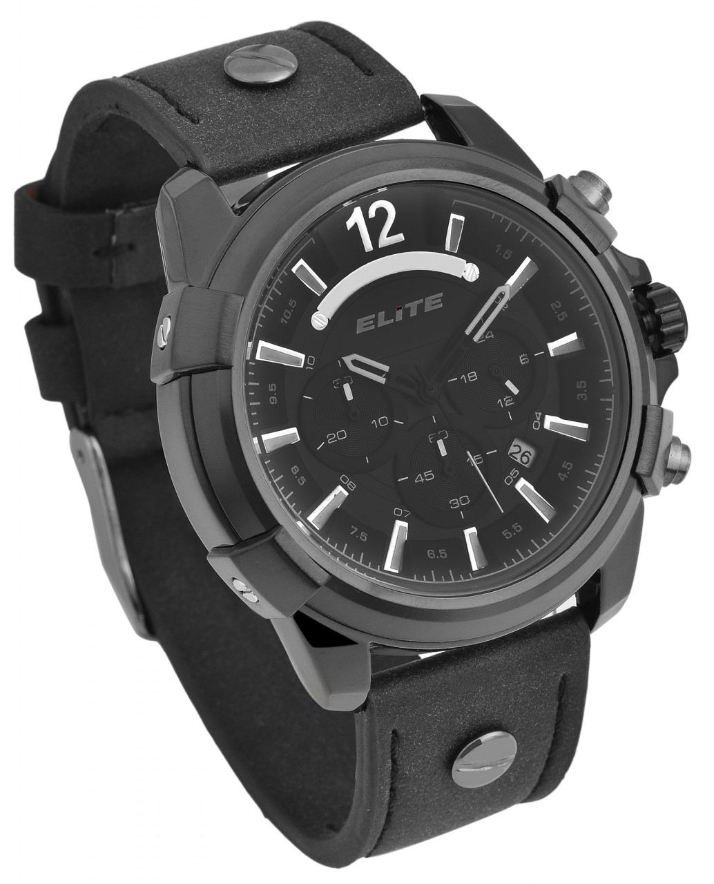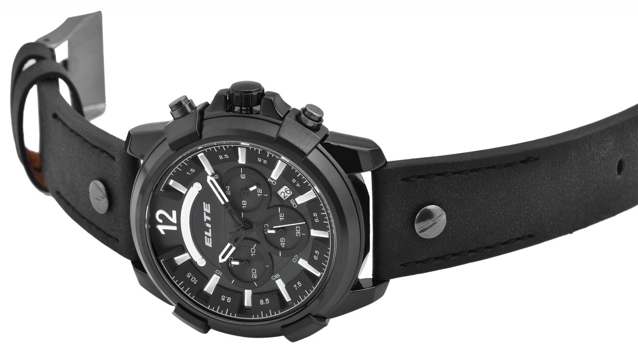 O relógio de pulso masculino da marca Elite possui um movimento de quartzo de alta qualidade que pode ser facilmente ajustado com uma coroa. A pulseira, feita de Pele Sintética, tem uma largura de 24 mm e pode ser aberta e fechada com uma fivela de alfinete. O comprimento total do relógio masculino é de 24,5 cm. A caixa de metal com vidro mineral tem um diâmetro de 50 mm e uma altura de 13 mm. O fundo da caixa é feito de aço inoxidável e o relógio tem resistência à água de 3 bar. Os ponteiros revestidos com Superluminova facilitam a leitura das horas mesmo no escuro. O relógio também possui várias funções, como função de parada ou exibição de data. Este relógio de pulso masculino é versátil e pode ser usado idealmente na vida cotidiana, mas também em outras ocasiões e também chama a atenção no pulso…