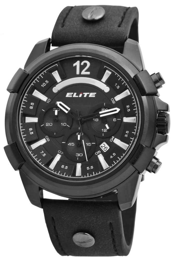 O relógio de pulso masculino da marca Elite possui um movimento de quartzo de alta qualidade que pode ser facilmente ajustado com uma coroa. A pulseira, feita de Pele Sintética, tem uma largura de 24 mm e pode ser aberta e fechada com uma fivela de alfinete. O comprimento total do relógio masculino é de 24,5 cm. A caixa de metal com vidro mineral tem um diâmetro de 50 mm e uma altura de 13 mm. O fundo da caixa é feito de aço inoxidável e o relógio tem resistência à água de 3 bar. Os ponteiros revestidos com Superluminova facilitam a leitura das horas mesmo no escuro. O relógio também possui várias funções, como função de parada ou exibição de data. Este relógio de pulso masculino é versátil e pode ser usado idealmente na vida cotidiana, mas também em outras ocasiões e também chama a atenção no pulso…