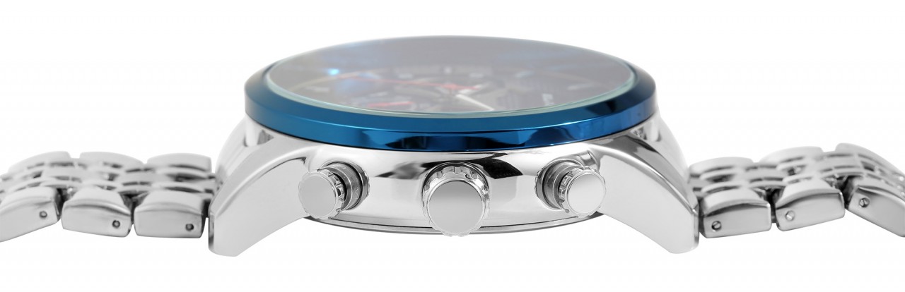 O cronógrafo masculino da marca Elite possui movimento de quartzo de alta qualidade. A pulseira de aço inoxidável tem 24 mm de largura na alça e pode ser aberta e fechada com um fecho dobrável com barra de segurança. Devido aos elementos removíveis, a pulseira pode ser ajustada a qualquer circunferência do pulso. O comprimento total do relógio é de 23,5 cm. A caixa de metal com vidro mineral tem um diâmetro de 46 mm e uma altura de 14 mm. O fundo da caixa é feito de aço inoxidável. O tempo pode ser parado com o cronógrafo e depois lido nos três totalizadores às três, seis e nove horas. O modelo também possui display de data às seis horas. Os ponteiros e índices revestidos com Superluminova facilitam a leitura das horas, mesmo no escuro. Além disso, o relógio masculino tem resistência à água de 3 bar.