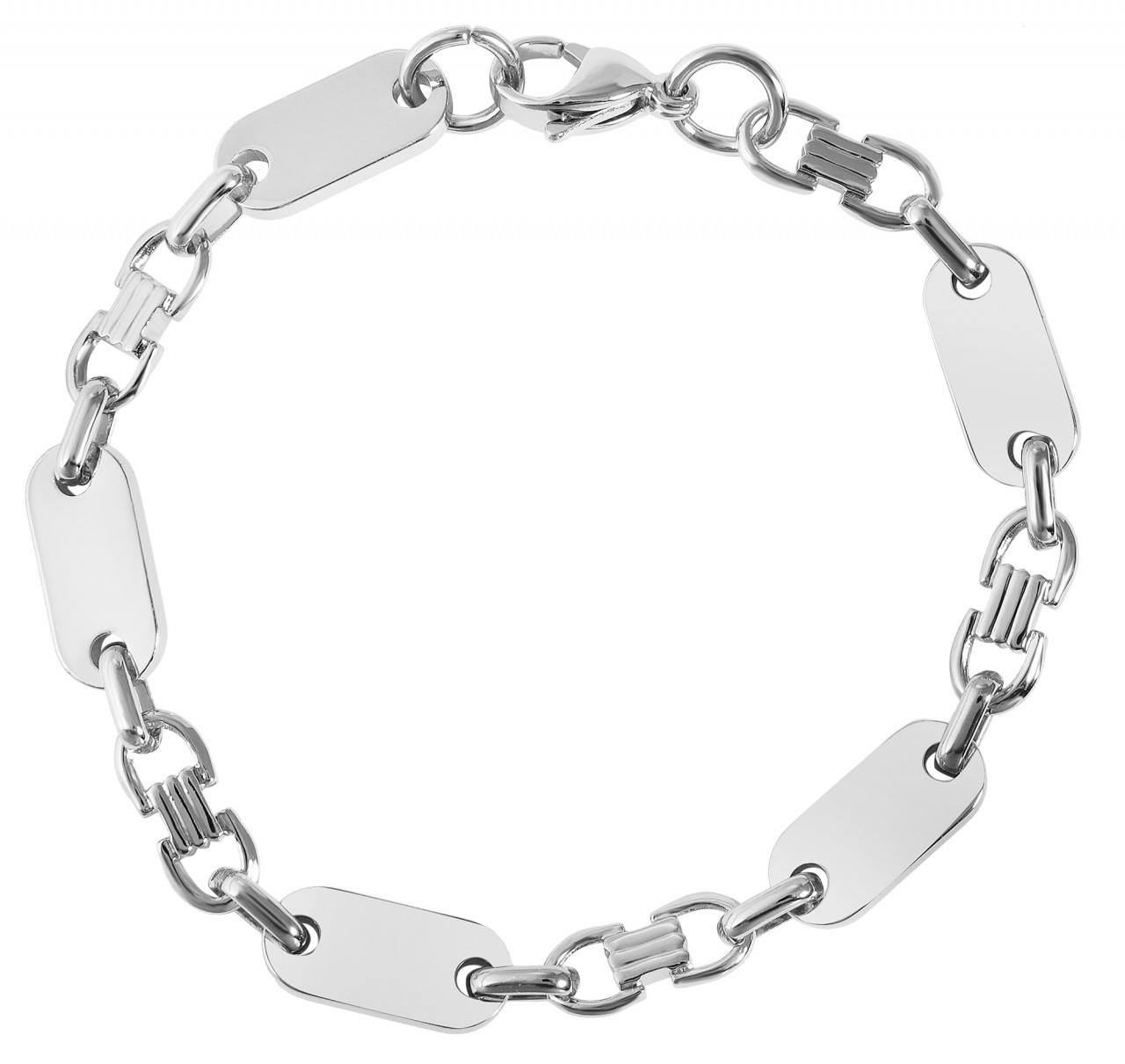 Elya é uma pulseira versátil que dá um toque especial a qualquer roupa. Pode ser usada tanto por homens como por mulheres. A impressionante pulseira está disponível em dois comprimentos: 19 cm e 21 cm. As placas de 18 x 8 mm oferecem espaço suficiente para uma gravação personalizada, como uma data, um nome ou um pequeno motivo. As placas de gravação alternam com os elementos texturados para dar à pulseira um aspeto impressionante. O fecho lagosta oferece-lhe segurança e facilita a colocação e a retirada. Combinada com a corrente “Andrin” a condizer, esta pulseira de placas é a combinação perfeita.