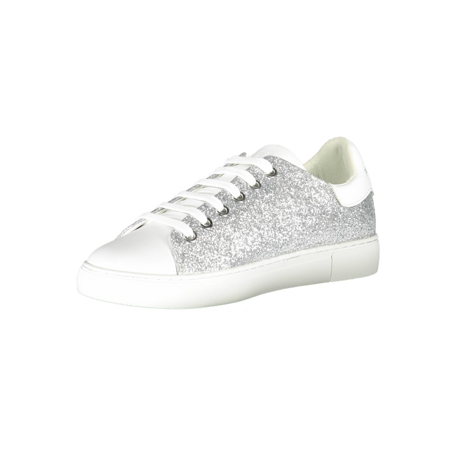 Calçado desportivo com atacadores, detalhes contrastantes, estampa, logótipo.