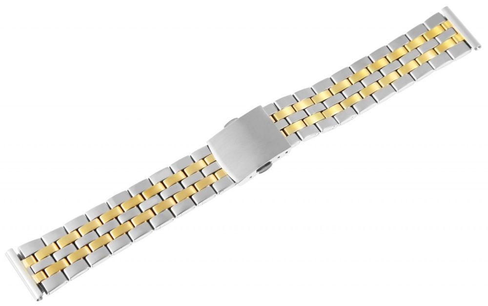 Esta pulseira de relógio bicolor está disponível em larguras de 14 a 21 mm e é feita de aço inoxidável de alta qualidade. O material significa longevidade e robustez.