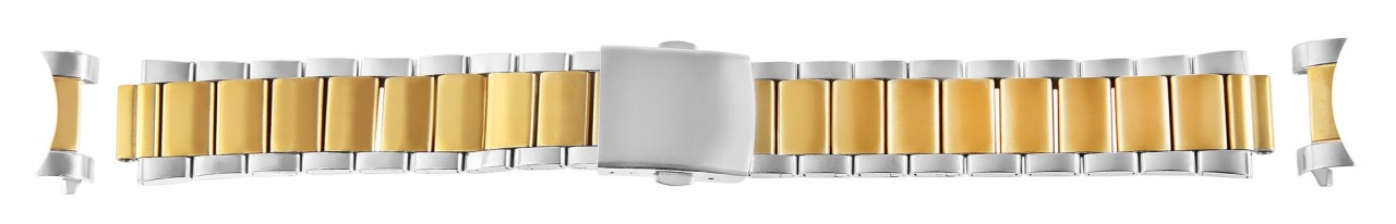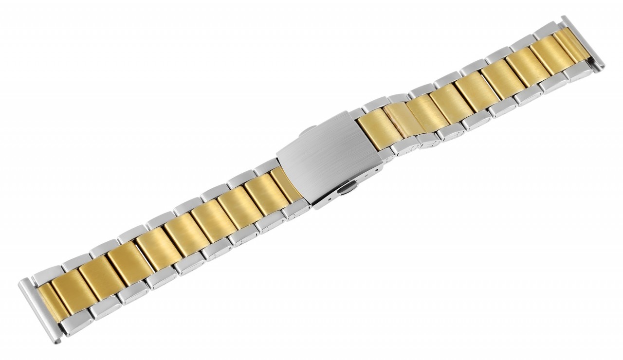 Esta pulseira de relógio bicolor está disponível em larguras de 18 a 24 mm e é feita de aço inoxidável de alta qualidade. O material significa longevidade e robustez.