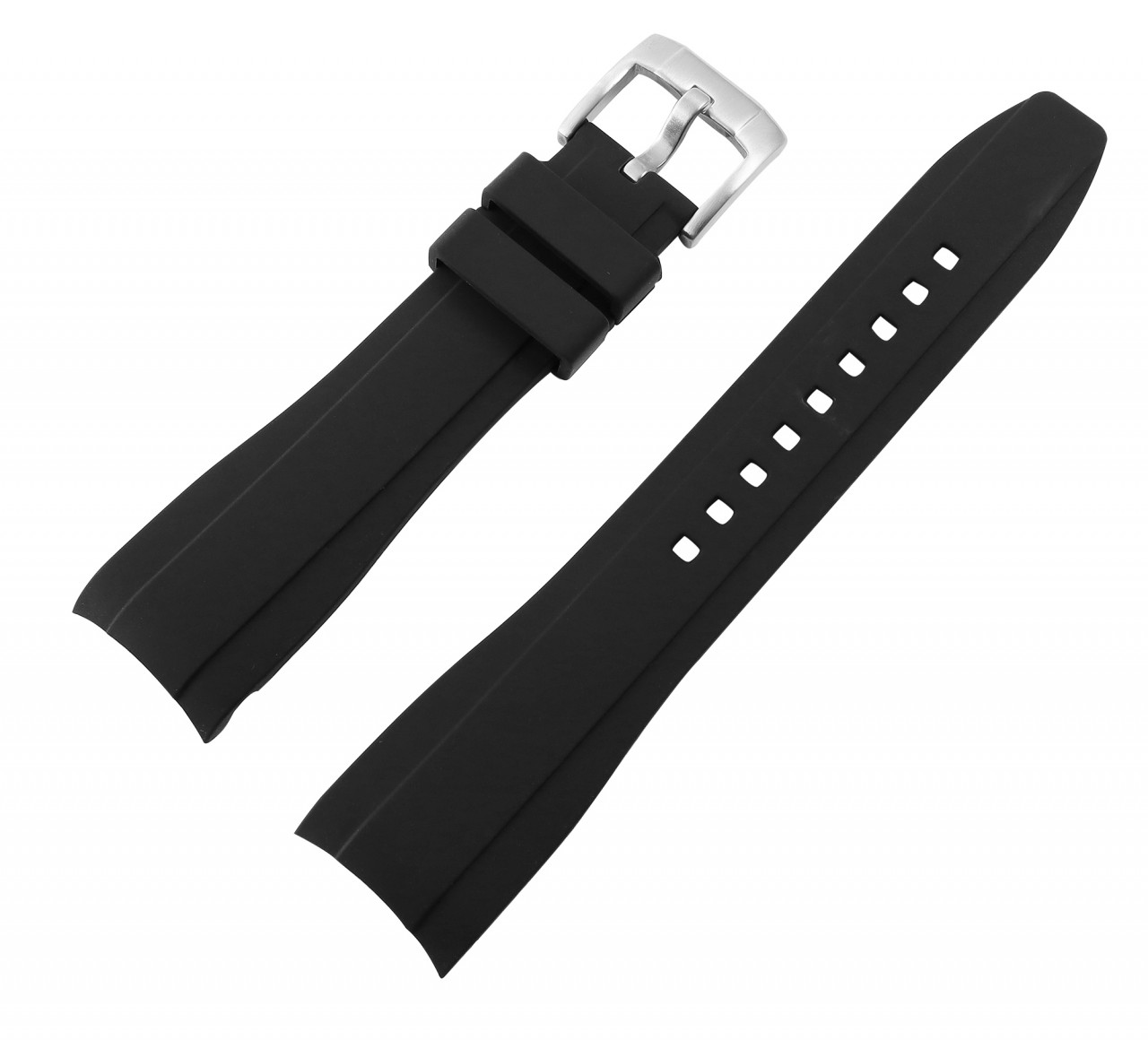 A pulseira de silicone preta com fivela de aço inoxidável prateada é uma escolha de primeira classe para aqueles que exigem mais qualidade e estilo. A pulseira do relógio representa excelente durabilidade no uso diário e conforto de primeira classe. Com larguras de 20 mm e 22 mm, esta pulseira é versátil e se adapta a uma ampla variedade de modelos de relógios. O comprimento total de 21 cm, que consiste na parte do furo de 12,5 cm de comprimento e na parte do fecho de 8,5 cm de comprimento, oferece um ajuste confortável em qualquer pulso. A fivela de pino de aço inoxidável garante uma fixação segura e confiável. As barras de banda não estão incluídas, portanto as barras existentes podem ser utilizadas.