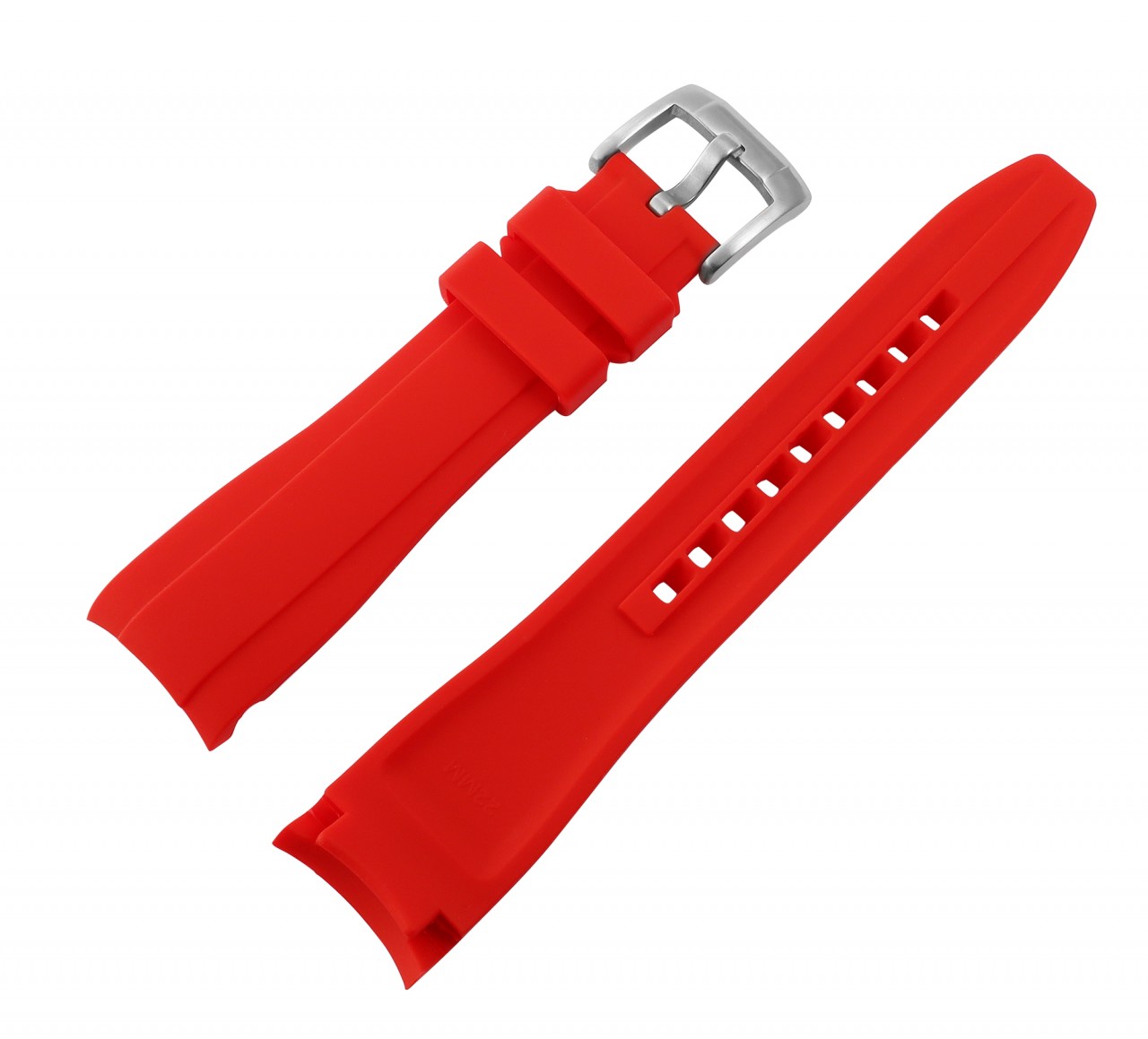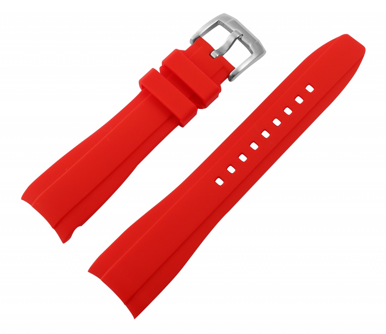 A pulseira de silicone vermelha com fivela de aço inoxidável prateada é uma escolha de primeira classe para quem exige os mais altos padrões de qualidade e estilo. A pulseira do relógio representa excelente durabilidade no uso diário e conforto de primeira classe. Com larguras de 20 mm e 22 mm, esta pulseira é versátil e se adapta a uma ampla variedade de modelos de relógios. O comprimento total de 21 cm, que consiste na parte do furo de 12,5 cm de comprimento e na parte do fecho de 8,5 cm de comprimento, oferece um ajuste confortável em qualquer pulso. A fivela de pino de aço inoxidável garante uma fixação segura e confiável. As barras de banda não estão incluídas, portanto as barras existentes podem ser utilizadas.
