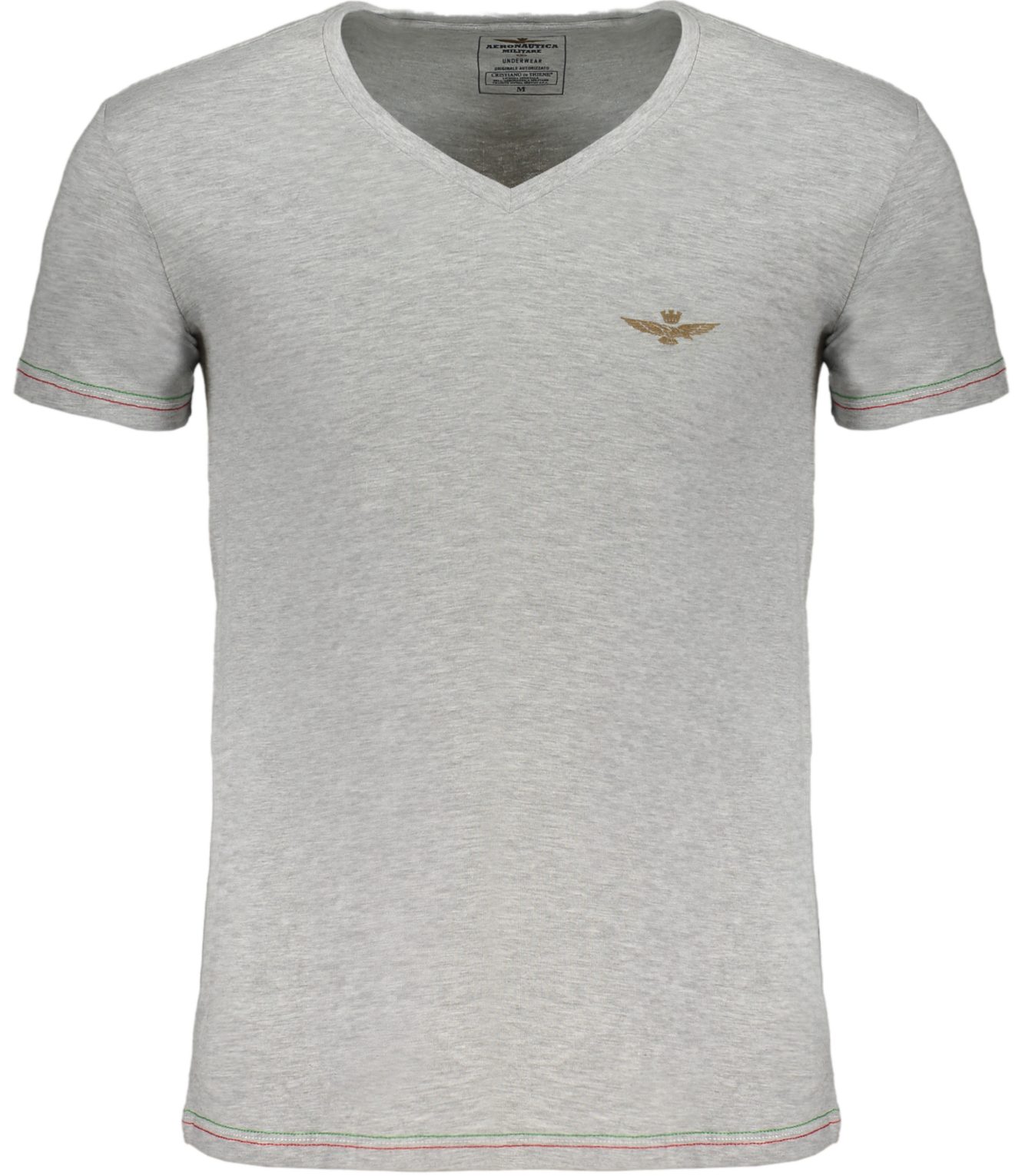 T-Shirt manga curta, decote em v, detalhes contrastados, estampa, logotipo