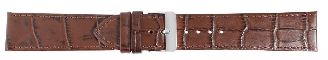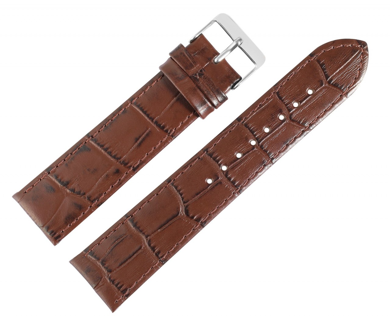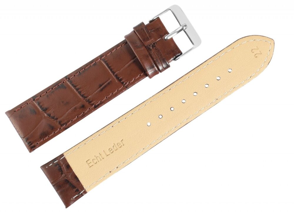 Com esta bracelete de substituição especial para relógios, feita de pele genuína e com um elegante relevo de crocodilo, tem uma forma elegante de dar aos relógios dos seus clientes um aspeto completamente novo. A bracelete em pele de alta qualidade garante o máximo conforto de utilização e impressiona pela sua robustez e durabilidade. A fivela de pino garante um fecho seguro e fiável e facilita a colocação e a retirada do relógio. A costura na parte lateral da bracelete não só garante uma excelente durabilidade, como também confere à bracelete uma dose extra de carácter e estilo. Com um comprimento de 20,5 cm a 23,5 cm, dependendo da largura da saliência, esta bracelete de substituição adapta-se confortavelmente a qualquer pulso e oferece uma experiência de utilização agradável durante todo o dia.