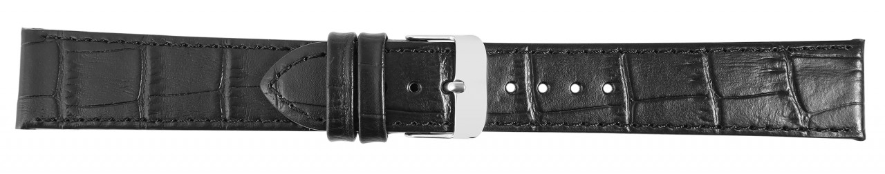 Com esta pulseira especial de substituição de relógio feita em couro genuíno e elegante relevo de crocodilo, você tem a oportunidade de dar aos relógios um visual completamente novo. Esta pulseira de substituição exclusiva está disponível em uma variedade de larguras de alças - 16 mm, 18 mm, 20 mm, 22 mm e 24 mm. A pulseira em couro de alta qualidade garante o máximo conforto e impressiona pela sua robustez e longevidade. A fivela garante uma fixação segura e confiável e permite que o relógio seja colocado e retirado sem esforço. A costura lateral da pulseira não só garante excelente durabilidade, mas também confere à pulseira uma dose extra de caráter e estilo.