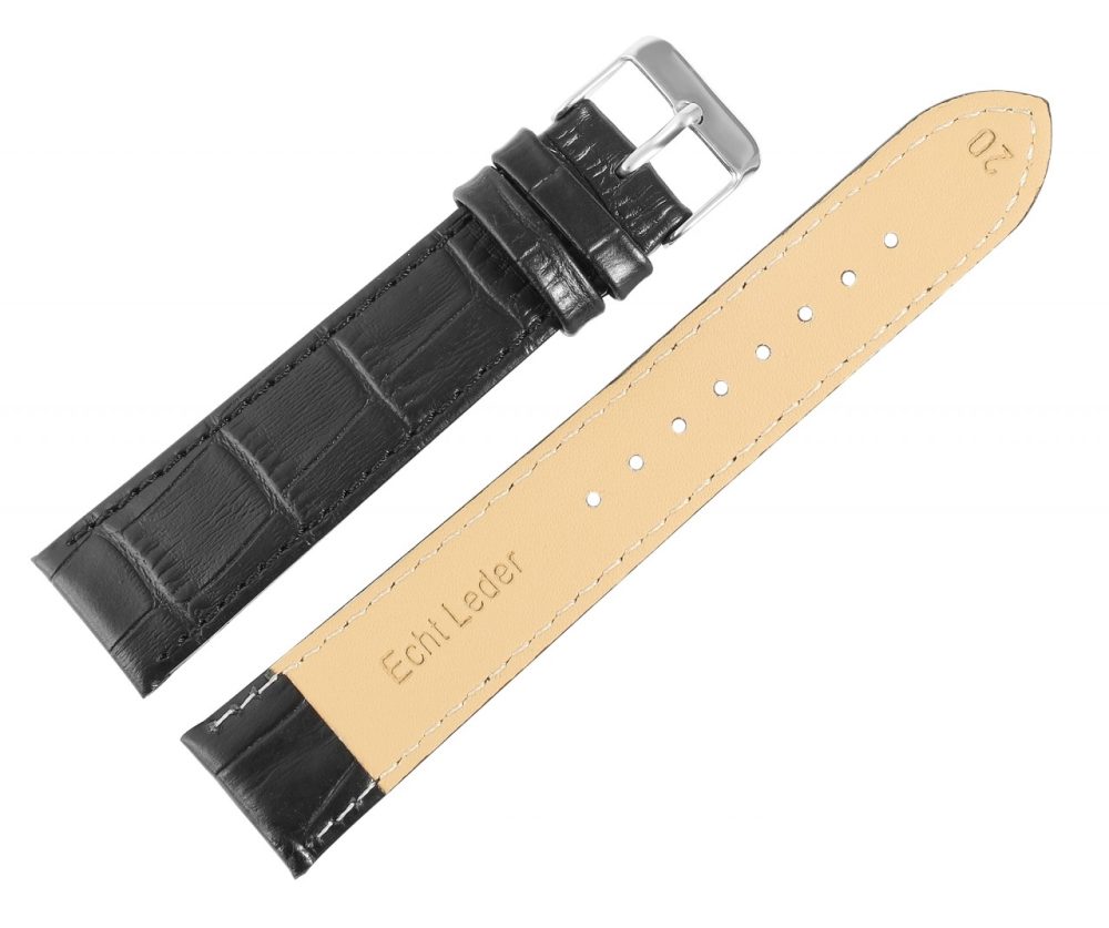 Com esta pulseira especial de substituição de relógio feita em couro genuíno e elegante relevo de crocodilo, você tem a oportunidade de dar aos relógios um visual completamente novo. Esta pulseira de substituição exclusiva está disponível em uma variedade de larguras de alças - 16 mm, 18 mm, 20 mm, 22 mm e 24 mm. A pulseira em couro de alta qualidade garante o máximo conforto e impressiona pela sua robustez e longevidade. A fivela garante uma fixação segura e confiável e permite que o relógio seja colocado e retirado sem esforço. A costura lateral da pulseira não só garante excelente durabilidade, mas também confere à pulseira uma dose extra de caráter e estilo.