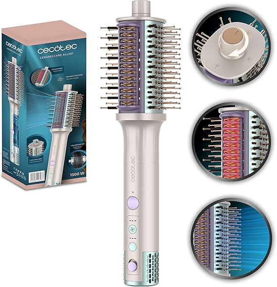 - 3 direções de ar: Com 3 direções selecionáveis de ar, pode escolher a direção que deseja para cada função usando a roda localizada na parte superior da escova, adaptando-a às suas necessidades e preferências de penteado. Cabo giratório de 360º: Com um cabo giratório de 360 graus, este modelador oferece total liberdade de movimento durante o penteado, evitando emaranhados e facilitando o manuseio em qualquer ângulo.