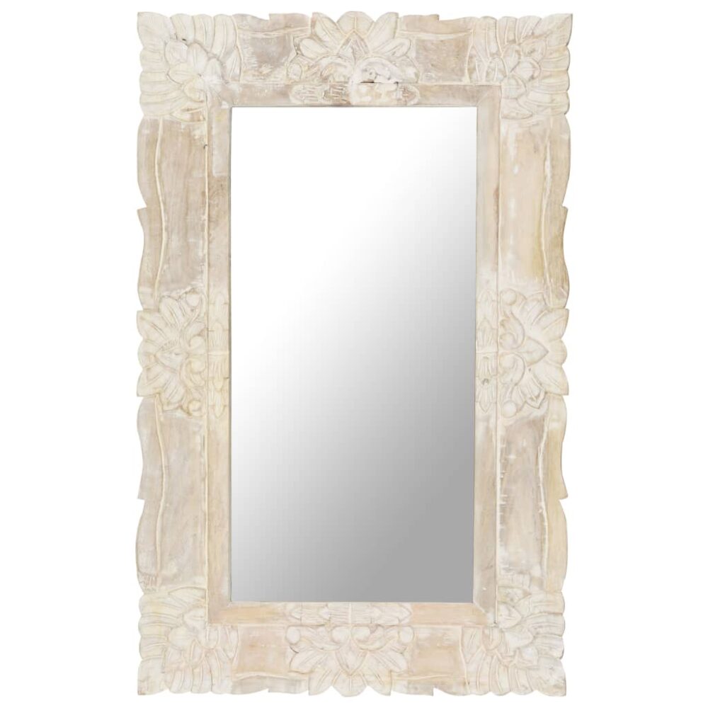 Este espelho em madeira de mangueira maciça é mais do que um objeto prático do dia-a-dia, é também uma decoração atraente para a sua casa. A madeira de mangueira maciça é uma madeira de lei tropical. Possui força para suportar o peso, bem como o desgaste causado pelo tempo. A artesania requintada e os bonitos grãos da madeira tornam ainda cada espelho de madeira ligeiramente diferente dos restantes. O padrão esculpido à mão contribui para a beleza do espelho. Nota importante: as cores e os grãos da madeira podem variar de peça para peça, tornando cada uma única e ligeiramente diferente das restantes. A entrega é aleatória, assegurando a exclusividade e a individualidade do seu produto.