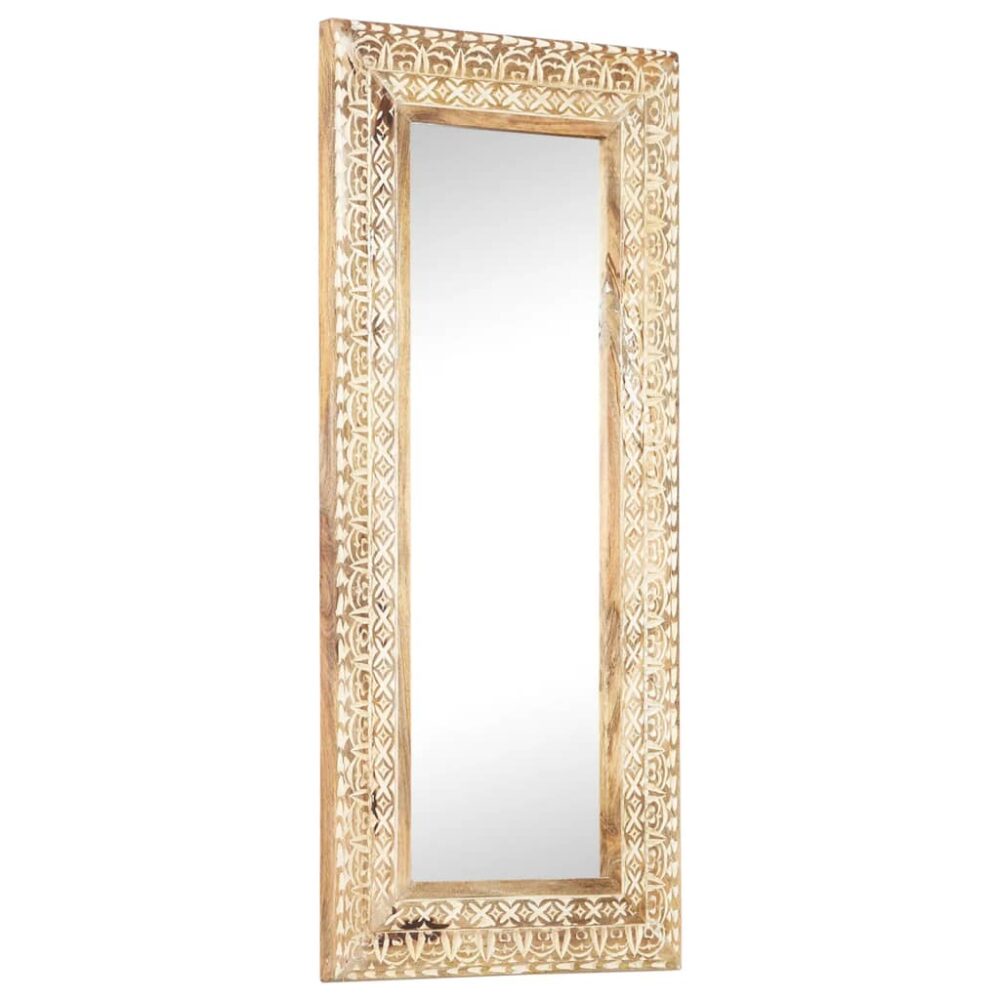 O nosso espelho de madeira esculpido à mão é mais do que um objeto prático para o dia-a-dia, é também uma decoração atraente para a sua casa. O espelho é feito em madeira de mangueira maciça, uma madeira tropical forte o suficiente para aguentar o peso. Também resiste ao desgaste causado pelo tempo, sendo estável e durável. A artesania e os bonitos grãos da madeira tornam cada peça de mobiliário única e ligeiramente diferente das restantes. O padrão esculpido à mão contribui para a sua beleza. Nota importante: as cores e os grãos variam de peça para peça, tornando única cada uma das nossas peças. A entrega é aleatória.