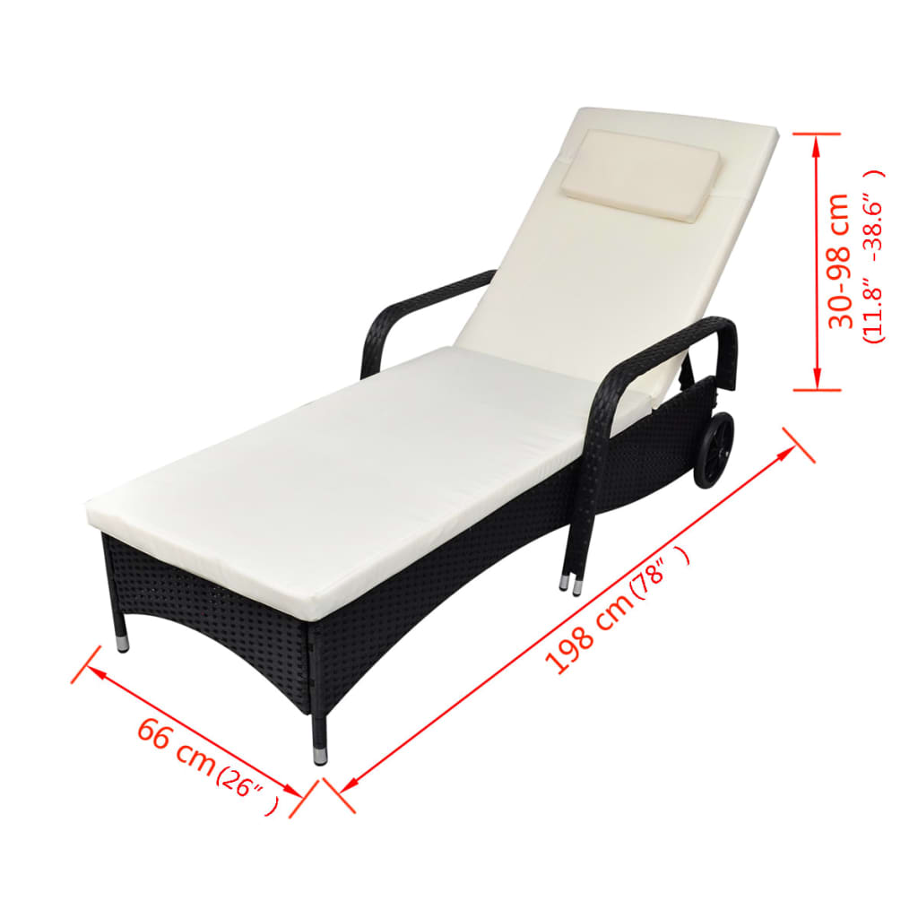 Esta espreguiçadeira em vime elegante garante um relaxamento absoluto no seu pátio ou no seu jardim. É feita de vime PE durável, que é resistente a intempéries e aos raios UV, por isso não se desvanecerá ao sol. Esta espreguiçadeira é composta por uma armação de aço revestido a pó, durável e forte.