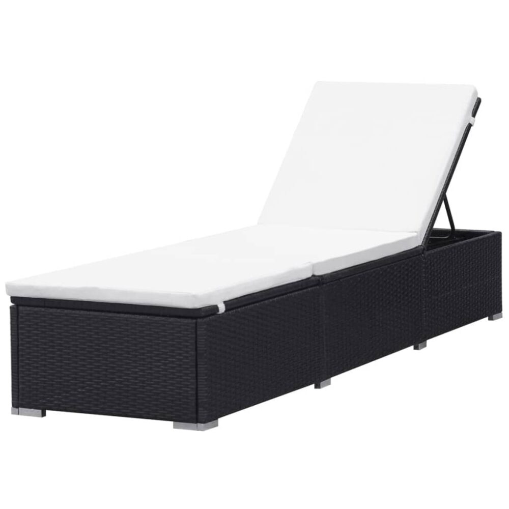 Espreguiçadeira com almofadão em vime PE preto - PORTES GRÁTIS