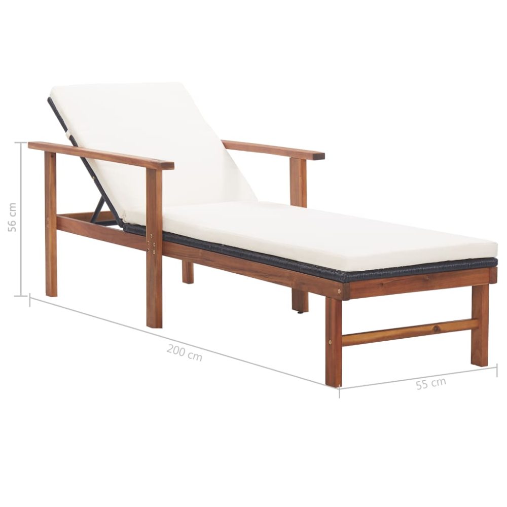 O assento e encosto são feitos em vime PE resistente às intempéries, o que torna a espreguiçadeira fácil de limpar, resistente ao desgaste e adequada para uma utilização diária no exterior. A estrutura, feita em madeira de acácia, é estável e fácil de cuidar. É entregue com almofadões para maior conforto em momentos de descanso.
