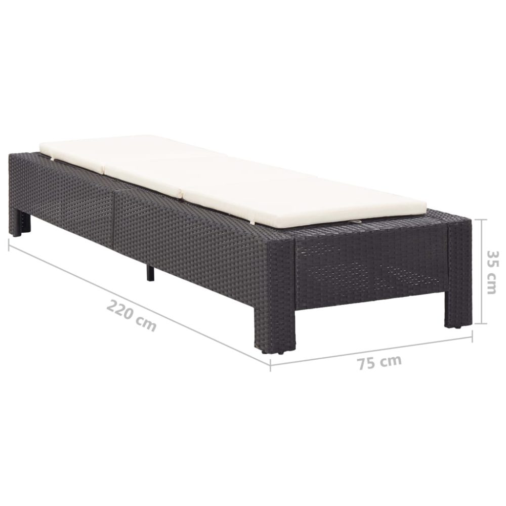 Sente-se, deixe-se ir e desfrute de um momento maravilhoso de relaxamento com a nossa espreguiçadeira confortável! Esta espreguiçadeira de qualidade em vime PE é uma combinação perfeita de estilo e funcionalidade, ideal para relaxar perto da piscina, na sua varanda, no seu pátio ou no parque de campismo durante as suas férias ou lazer!