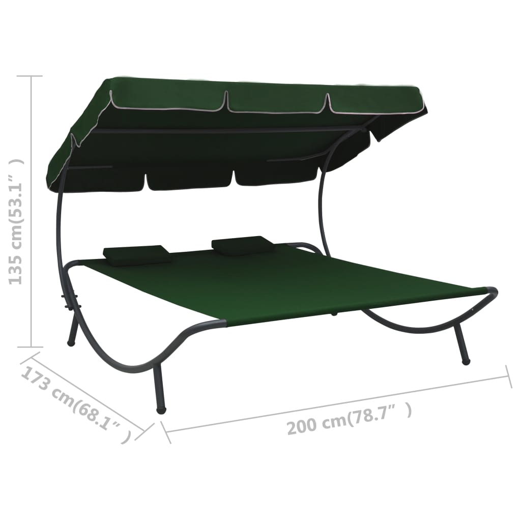 Esta espreguiçadeira dupla, com 2 almofadas e uma cobertura grande, será certamente um foco de atenção onde quer que a coloque. É a escolha perfeita para relaxar ou para se divertir com os seus familiares no jardim, quintal, pátio ou praia.