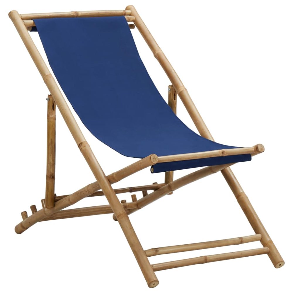 Espreguiçadeira de bambu e lona azul-marinho - PORTES GRÁTIS