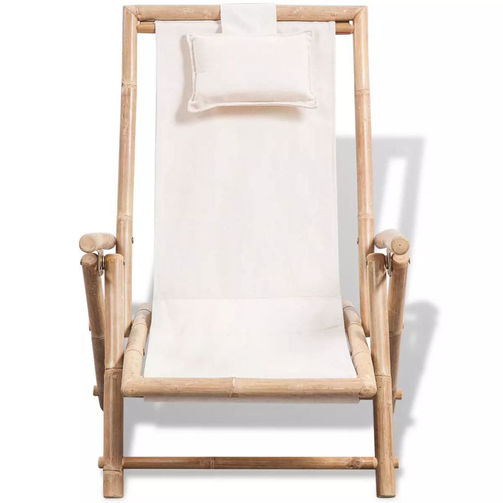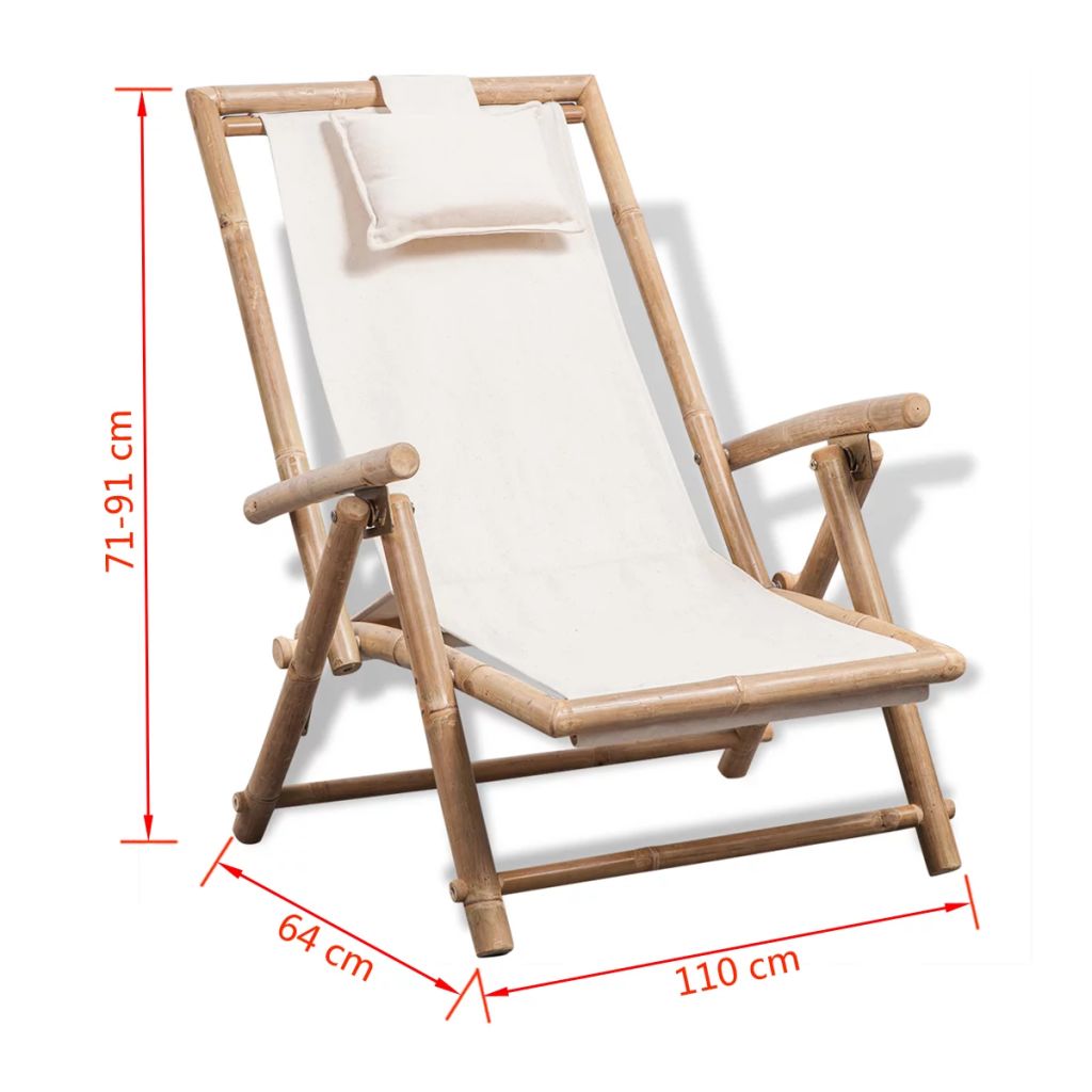 Feita de bambu de alta qualidade, a espreguiçadeira é resistente às intempéries e durável. A lona torna-a confortável de sentar. O encosto da cadeira pode ser ajustado em 4 posições.
