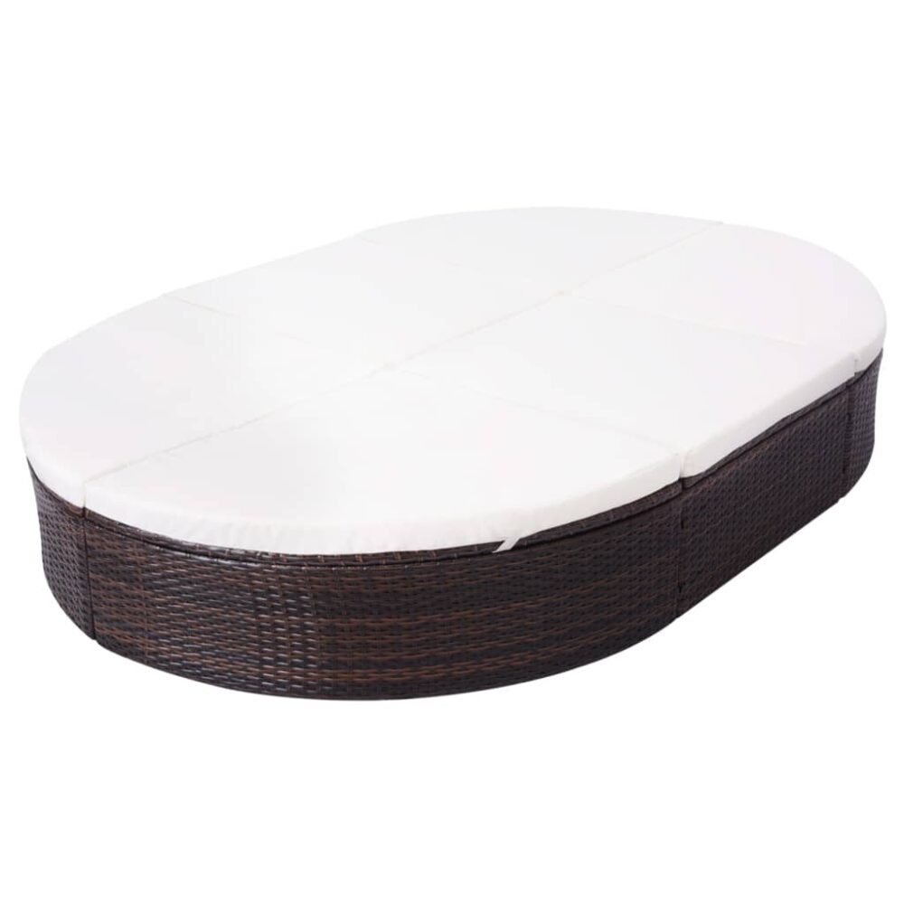 A espreguiçadeira oval de exterior é feita em vime PE resistente às intempéries e impermeável, o que a torna adequada para uso ao ar livre ao longo do ano. A espreguiçadeira dupla possui uma estrutura de aço revestido a pó robusta e durável. Ambas as extremidades podem ser ajustadas em cinco posições, para um maior conforto quando estiver deitado.