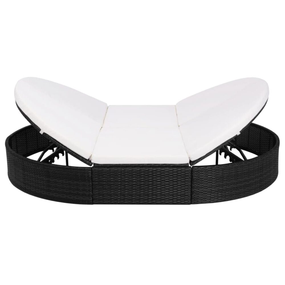 A espreguiçadeira oval de exterior é feita em vime PE resistente às intempéries e impermeável, o que a torna adequada para uso ao ar livre ao longo do ano. A espreguiçadeira dupla possui uma estrutura de aço revestido a pó robusta e durável. Ambas as extremidades podem ser ajustadas em cinco posições, para um maior conforto quando estiver deitado.