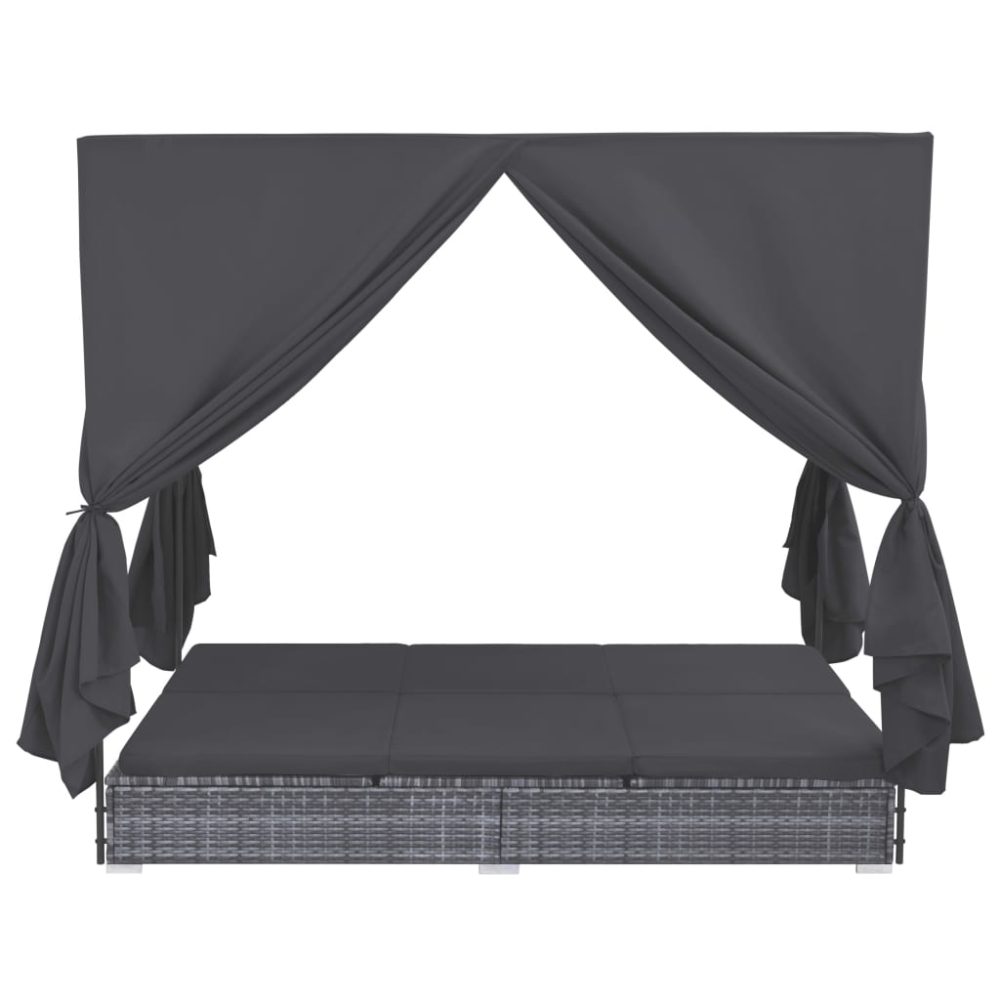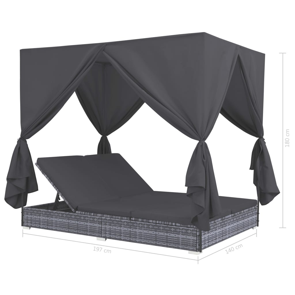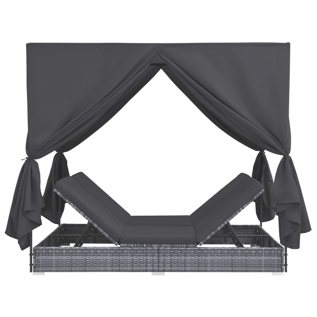 Espreguiçadeira de exterior com cortinas em vime PE cinzento - PORTES GRÁTIS