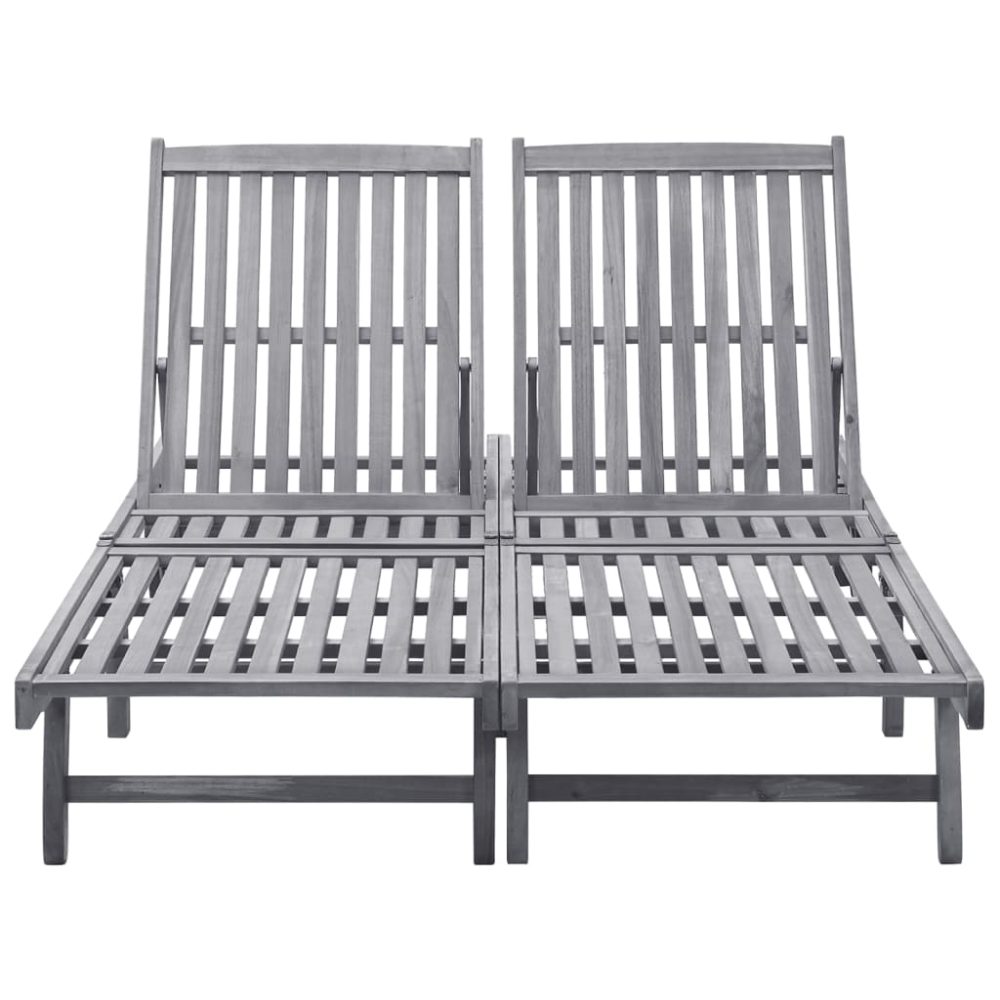 Estas espreguiçadeiras são feitas em madeira de acácia maciça com um acabamento a cinzento lavado, tornando-as resistentes e estáveis. O encosto é ajustável para que encontre sempre a posição mais confortável. As ripas do assento e do encosto também oferecem um excelente apoio e conforto. Uma vez que possui 2 rodas, esta espreguiçadeira pode ser facilmente movida pela casa.