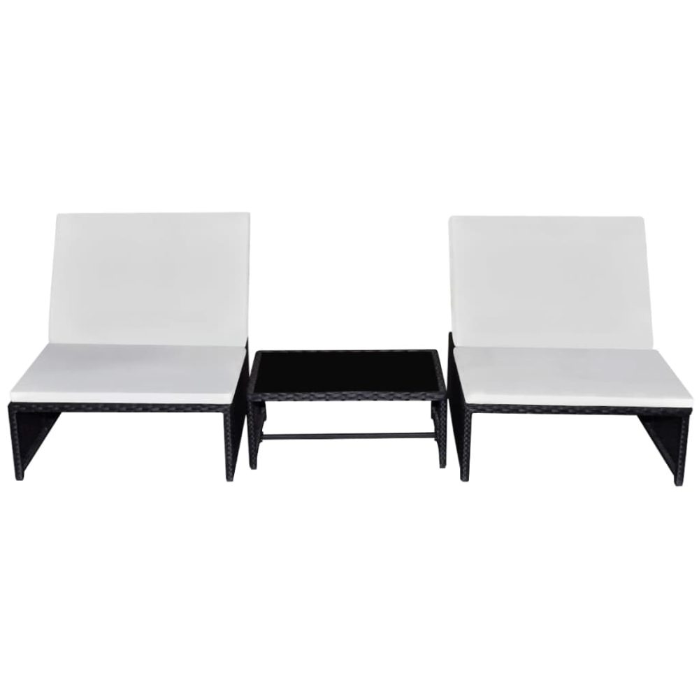 A entrega inclui 1 mesa de centro, 2 espreguiçadeiras e 2 almofadões removíveis.
