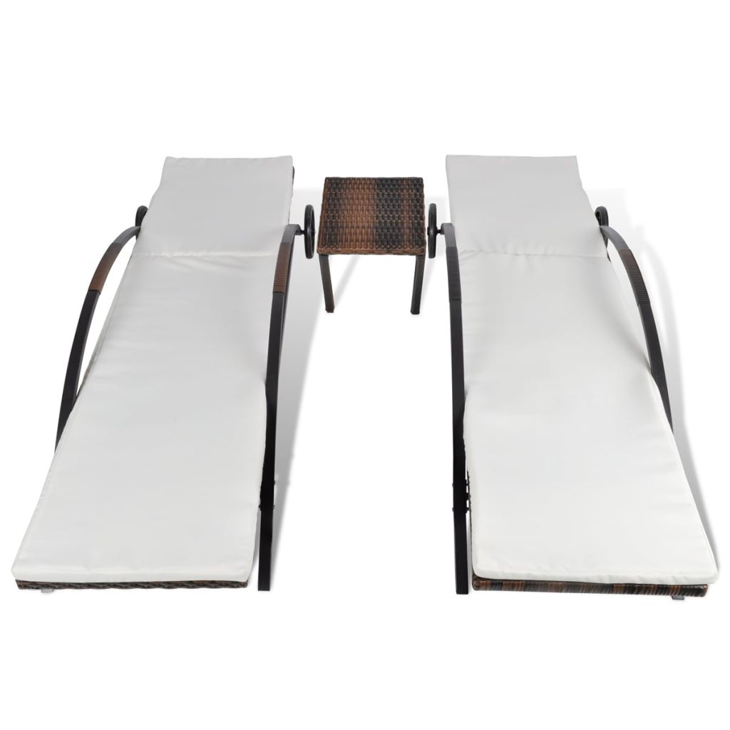 Este conjunto de espreguiçadeiras em vime composto por duas espreguiçadeiras e uma mesa combina estilo com funcionalidade e irá tornar-se o ponto focal do seu jardim ou pátio.