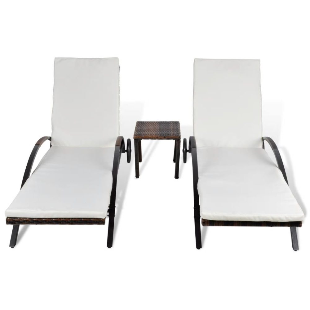 Este conjunto de espreguiçadeiras em vime composto por duas espreguiçadeiras e uma mesa combina estilo com funcionalidade e irá tornar-se o ponto focal do seu jardim ou pátio.
