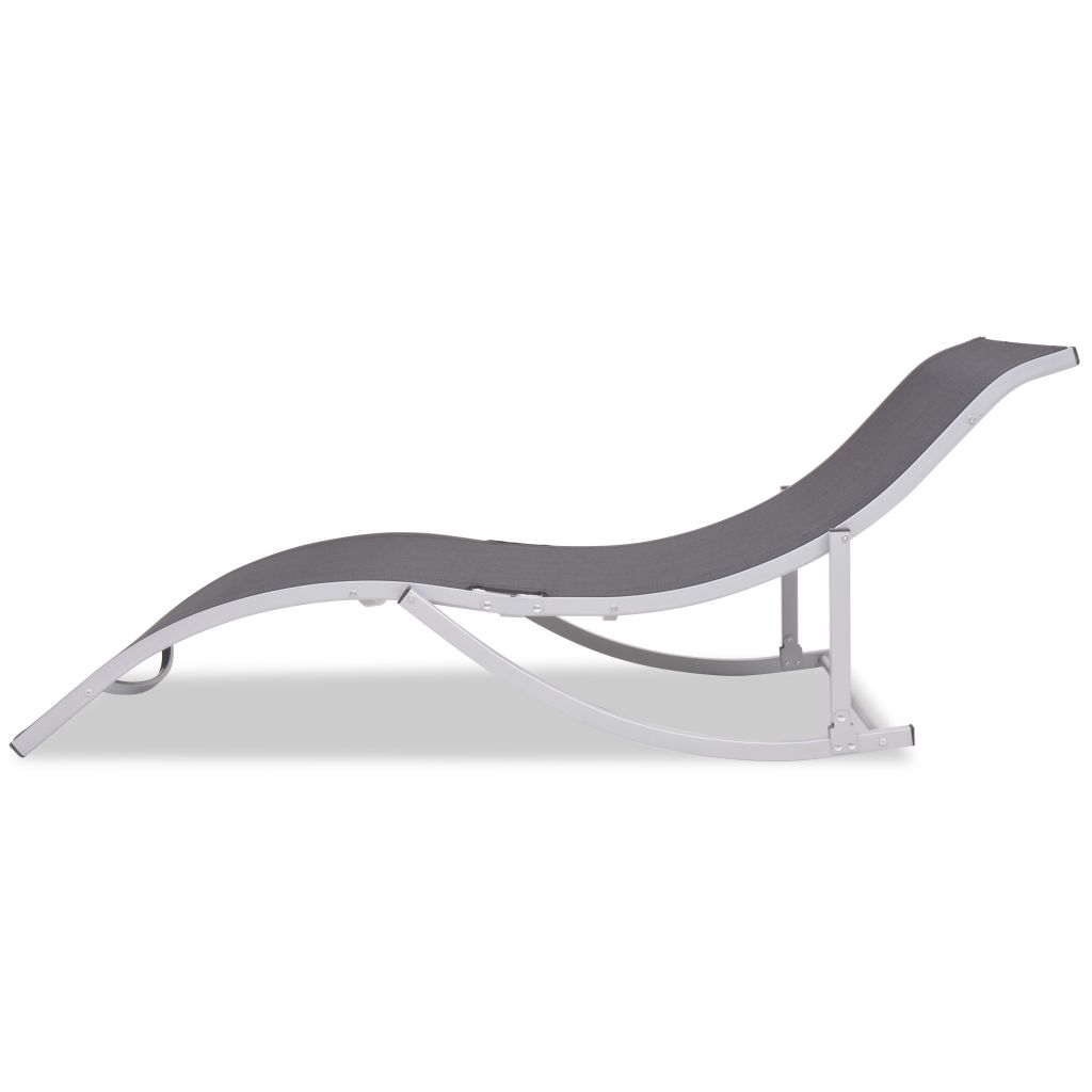 As espreguiçadeiras têm um design impressionante e curvo. As suas estruturas são feitas de alumínio resistente e os assentos e encostos são feitos de um tecido textilene forte. As espreguiçadeiras são estáveis, altamente duráveis e resistentes às intempéries.