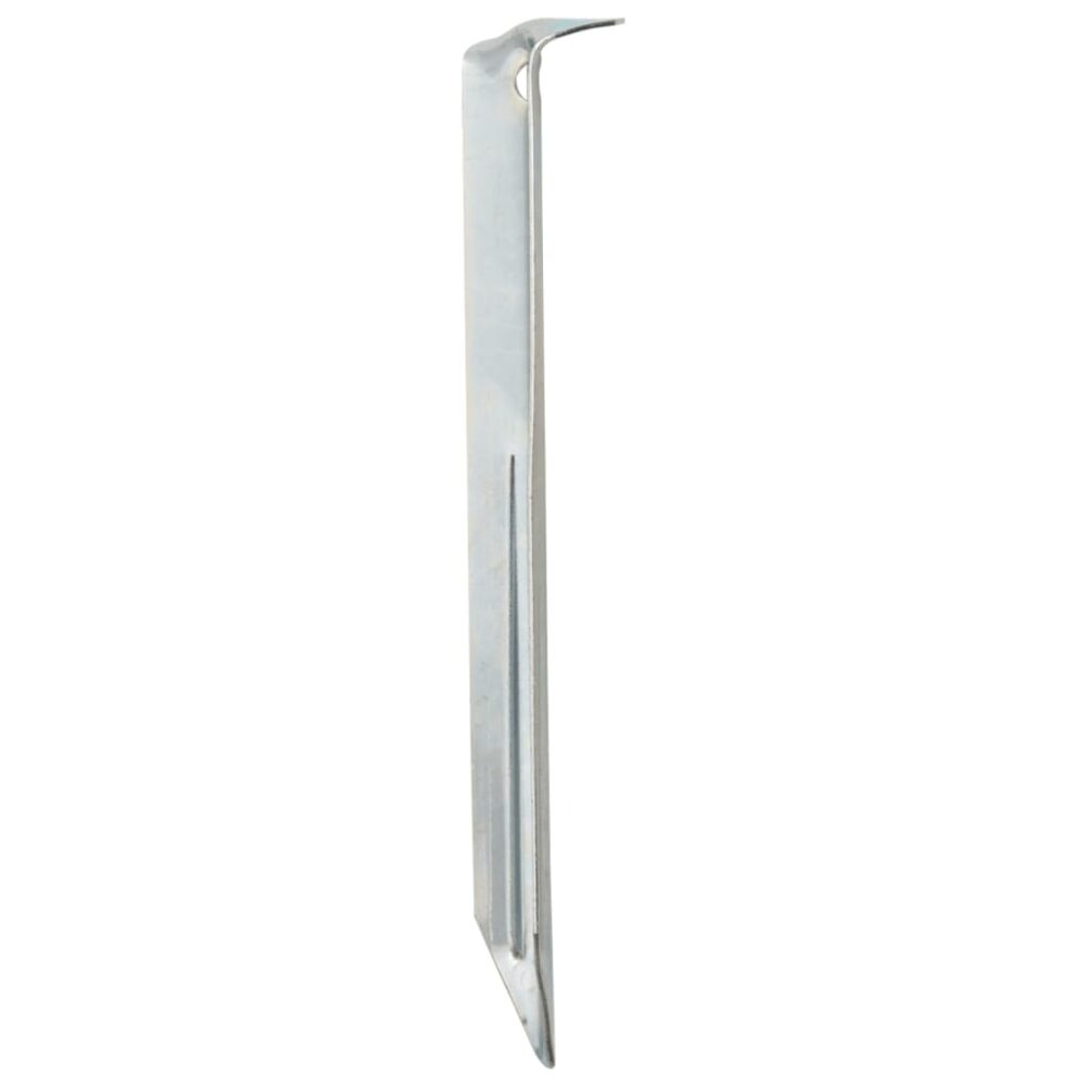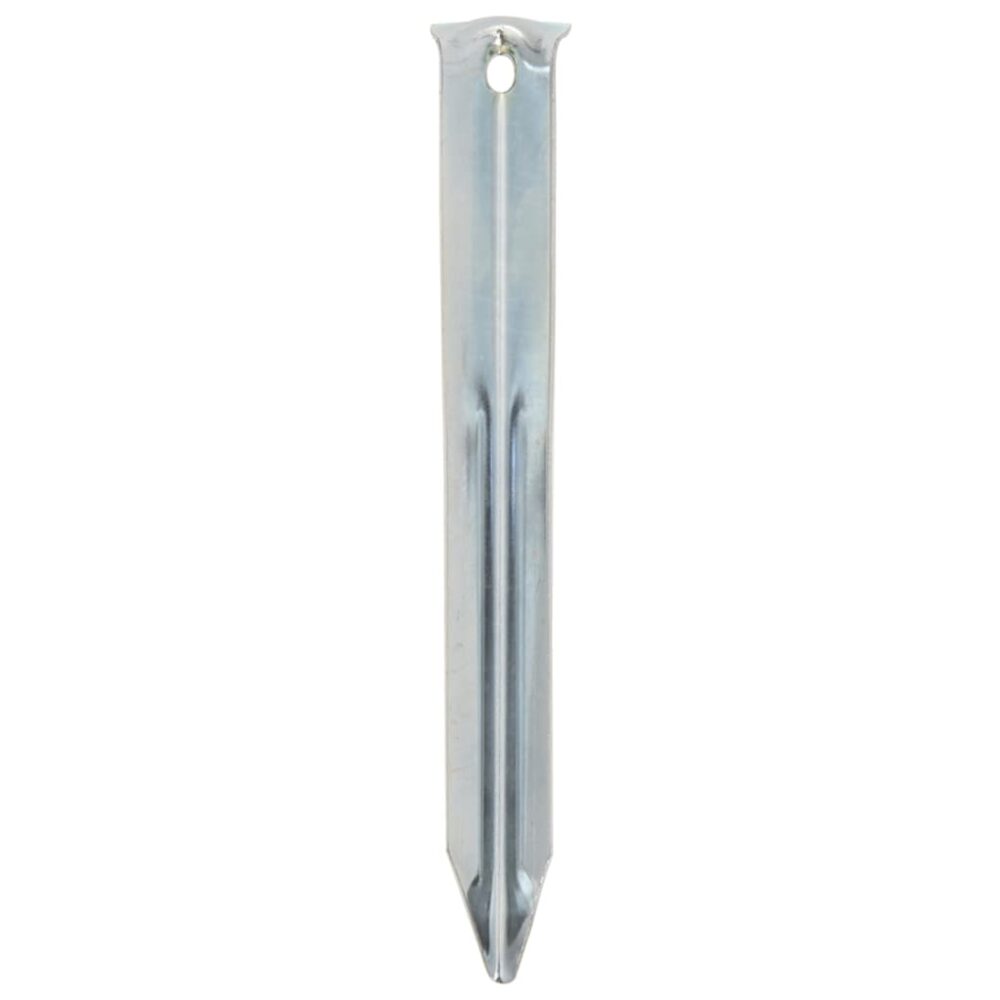 Melhore a sua experiência de campismo ao ar livre, fixando sem esforço a sua tenda ou outro equipamento de exterior com estas fiáveis estacas para tendas! Material de aço resistente: feita de aço galvanizado resistente à ferrugem, esta estaca para tenda é excecionalmente durável, robusta e resistente à deformação, garantindo um desempenho duradouro.Fácil de fixar: esta estaca de chão pode ser enterrada com facilidade num solo normal com um martelo, graças à sua extremidade pontiaguda.Design prático: o buraco na parte superior da estaca de tenda é ótimo para poder puxá-la e prender cordas guia e cintas de tensão. A robusta cabeça arredondada pode suportar facilmente os impactos de um malho de borracha.Fácil de usar: incline a estaca em direção ao chão ao fixá-la. Este posicionamento garante que oferece maior força e resistência ao vento para manter o seu artigo firmemente ancorado.Amplas aplicações: a estaca de tenda é um elemento multifuncional essencial para ancorar vários equipamentos de exterior, tais como tendas, gazebos, toldos, telas de privacidade, toldos de tendas e equipamento de pesca. Atenção:Por razões de segurança, por favor, mantenha estas estacas com pontas afiadas fora do alcance das crianças.