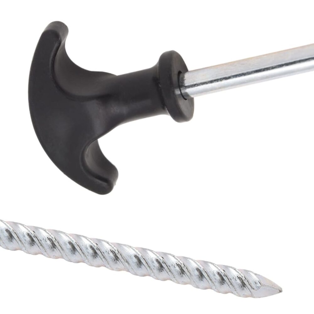 Melhore a sua experiência de campismo ao ar livre, fixando sem esforço a sua tenda ou outro equipamento de exterior com estas fiáveis estacas para tendas! Material de aço resistente: feita de aço galvanizado resistente à ferrugem, esta estaca para tenda é excecionalmente durável, robusta e resistente à deformação, garantindo um desempenho duradouro.Excelente aderência ao solo: esta estaca de tenda apresenta uma superfície roscada para uma aderência superior ao solo e estabilidade em vários ambientes, tais como solo rochoso, florestas e prados.Design prático: o design em forma de T na parte superior da estaca de tenda é perfeito para a poder puxar facilmente e ajuda a evitar que as cordas guia e as tiras de tensão escorreguem.Fácil de usar: incline a estaca em direção ao chão ao fixá-la. Este posicionamento garante que oferece maior força e resistência ao vento para manter o seu artigo firmemente ancorado.Amplas aplicações: a estaca de tenda é um elemento multifuncional essencial para ancorar vários equipamentos de exterior, tais como tendas, gazebos, toldos, telas de privacidade, toldos de tendas e equipamento de pesca. Atenção:Por razões de segurança, por favor, mantenha estas estacas com pontas afiadas fora do alcance das crianças.