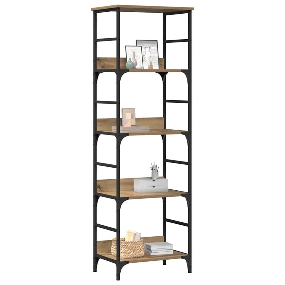 Crie um espaço de arrumação adicional na sua casa ou escritório com esta estante!Material durável: a estante é feita de derivados de madeira. Os derivados de madeira possuem uma qualidade excecional e oferecem uma superfície suave bem como força, estabilidade e resistência à humidade.Amplo espaço de arrumação: a estante apresenta 4 prateleiras, oferecendo um amplo espaço de arrumação para manter as suas revistas, livros, artigos decorativos e outros artigos essenciais do dia-a-dia bem organizados e ao seu alcance.Estrutura robusta: o aço é um material excecionalmente duro e forte. Oferece robustez e estabilidade.Design de bordas elevadas: com bordas elevadas na área traseira, esta estante ajuda a impedir que os seus livros caiam.Estilo industrial: acrescente um encantador estilo industrial à decoração atual…