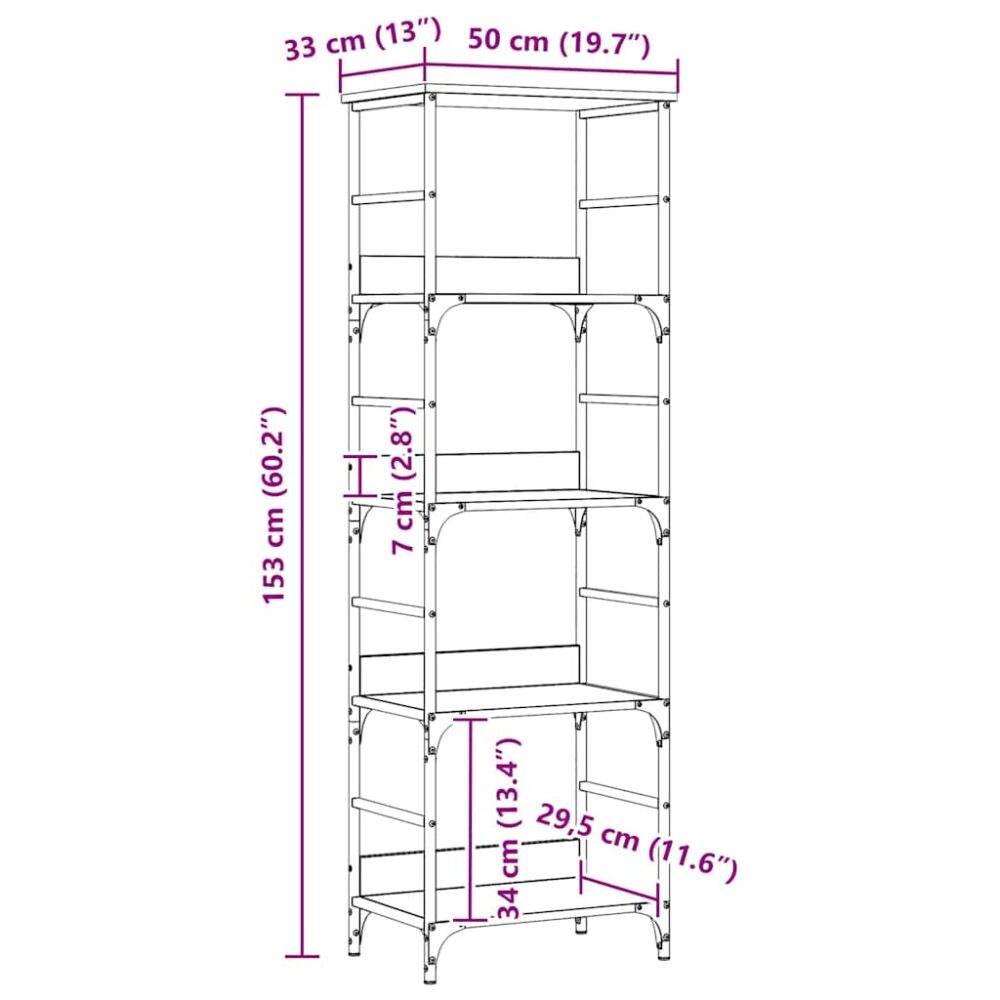 Crie um espaço de arrumação adicional na sua casa ou escritório com esta estante!Material durável: a estante é feita de derivados de madeira. Os derivados de madeira possuem uma qualidade excecional e oferecem uma superfície suave bem como força, estabilidade e resistência à humidade.Amplo espaço de arrumação: a estante apresenta 4 prateleiras, oferecendo um amplo espaço de arrumação para manter as suas revistas, livros, artigos decorativos e outros artigos essenciais do dia-a-dia bem organizados e ao seu alcance.Estrutura robusta: o aço é um material excecionalmente duro e forte. Oferece robustez e estabilidade.Design de bordas elevadas: com bordas elevadas na área traseira, esta estante ajuda a impedir que os seus livros caiam.Estilo industrial: acrescente um encantador estilo industrial à decoração atual do seu interior. Esta estante de arrumação confere um design inspirado em fábricas antigas e espaços industriais à sua área habitacional.Atenção:Para evitar que o produto tombe, deve utilizar o dispositivo de fixação na parede (não fornecido).