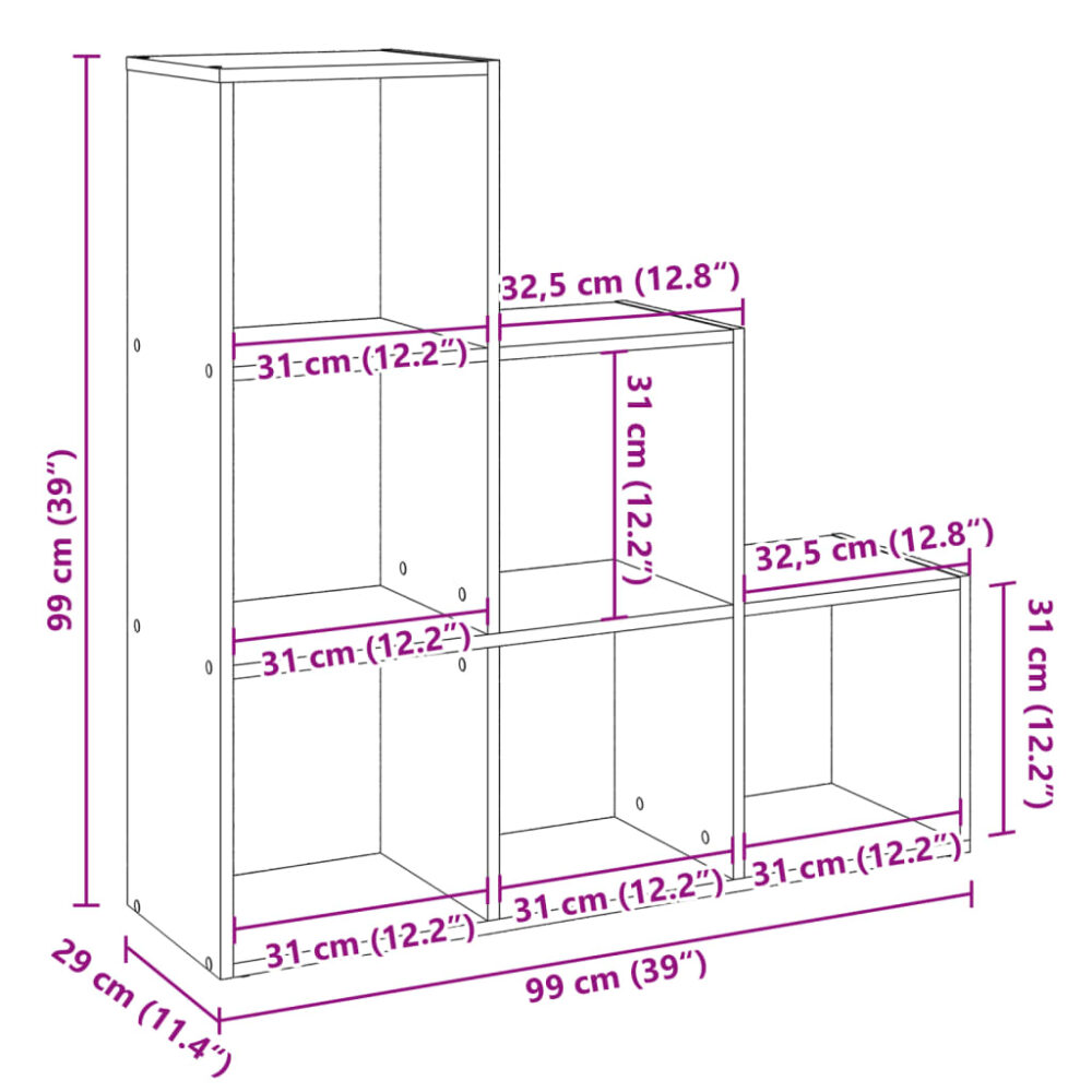 A estante divisória de 3 níveis possui seis compartimentos cúbicos, perfeitos para organizar o seu espaço com estilo!Material estável e durável: os derivados de madeira são um material durável e estável com uma superfície lisa que é resistente à humidade, deformação e rachadelas, tornando-se uma escolha fiável para vários projetos.Amplo espaço de arrumação: a estante possui seis compartimentos cúbicos, perfeitos para organizar livros, decorações e outros artigos domésticos.Opções flexíveis de colocação: a unidade de prateleiras pode ser posicionada com a sua largura ou altura no chão, oferecendo opções versáteis de layout de divisão.Aplicações versáteis: a unidade de prateleiras pode também ser utilizada como divisória, adaptando-se facilmente a qualquer estilo de divisão. Pode colocá-la na sala de estar para expor decorações, no espaço de estudo para arrumar livros e documentos, no quarto para guardar artigos do dia-a-dia e na cave para arrumar bugigangas.Fácil de cuidar: graças à sua superfície suave, a estante divisória de arrumação é fácil de limpar com um pano húmido e requer menos manutenção.Atenção:Para evitar que tombe, este produto deve ser utilizado com o dispositivo de fixação na parede fornecido.Dica útil:Os parafusos e buchas para inserção na parede não estão incluídos. Aconselhamos que procure e utilize parafusos e brocas adequadas especificamente para as suas paredes. Se não tiver a certeza, pode consultar um profissional. Por favor, leia e siga cada um dos passos das instruções.