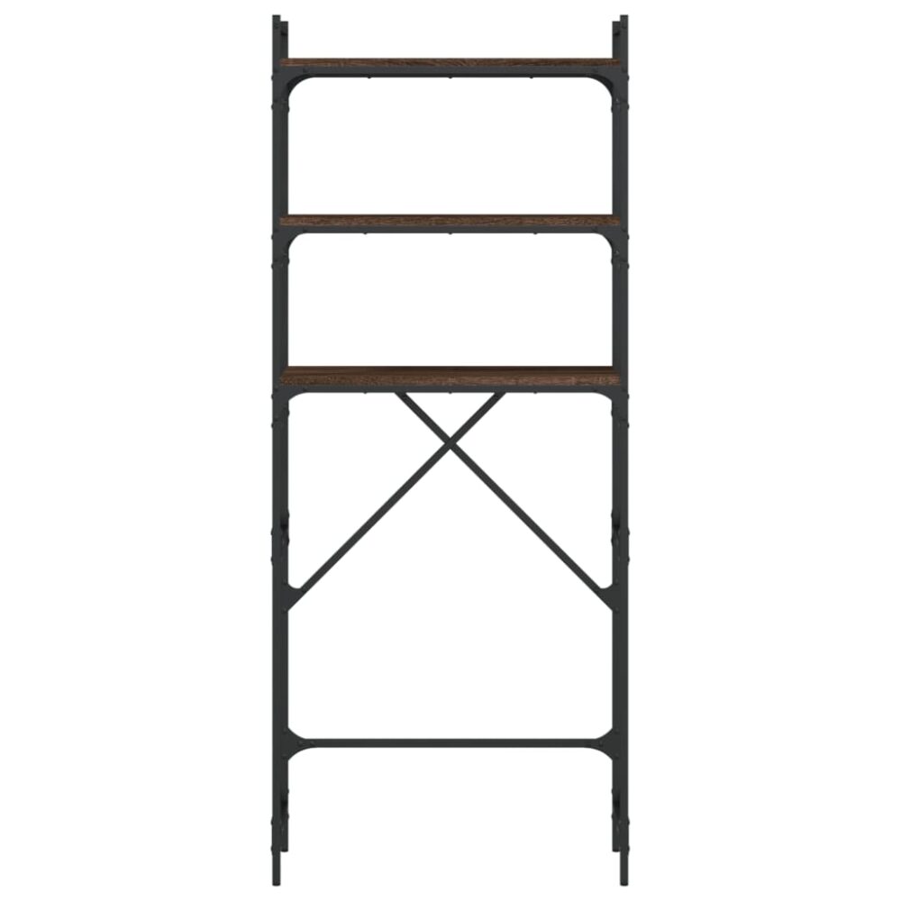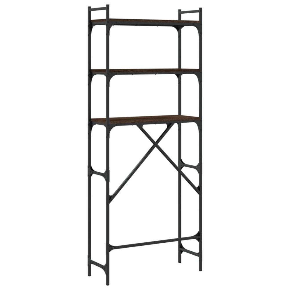 Esta estante com 3 prateleiras para a máquina de lavar roupa é a solução perfeita para criar espaço de arrumação adicional numa casa de banho ou lavandaria sobrelotadas. Material durável: os derivados de madeira possuem uma qualidade excecional e oferecem não só uma superfície suave mas também força, estabilidade e resistência à humidade. Feita de derivados de madeira, a estante de casa de banho é fácil de limpar.Amplo espaço de arrumação: a unidade de arrumação para casa de banho apresenta 3 prateleiras, oferecendo um amplo espaço para acomodar facilmente os seus artigos de limpeza essenciais, tais como o sabão, o detergente da roupa, o amaciador, etc.Design que economiza espaço: o organizador de WC foi concebido para ser colocado acima da máquina de lavar roupa ou da sanita, pelo que se adequa bem a espaços pequenos e é ideal para casas de banho e lavandarias pequenas.Pés ajustáveis: os pés ajustáveis com almofadas de plástico mantêm o suporte para casa de banho equilibrado em superfícies irregulares e aumentam a estabilidade.Estrutura de metal: a estrutura de metal acrescenta um estilo industrial no seu interior, enquanto assegura durabilidade e estabilidade. Atenção:Para evitar que o produto se vire, deve utilizar o dispositivo de fixação na parede fornecido. Útil saber:Os parafusos e buchas para inserção na parede não estão incluídos. Aconselhamos que procure e utilize parafusos e brocas adequados especificamente para as suas paredes. Se não tiver a certeza, pode consultar um profissional. Por favor, leia e siga cada um dos passos das instruções.