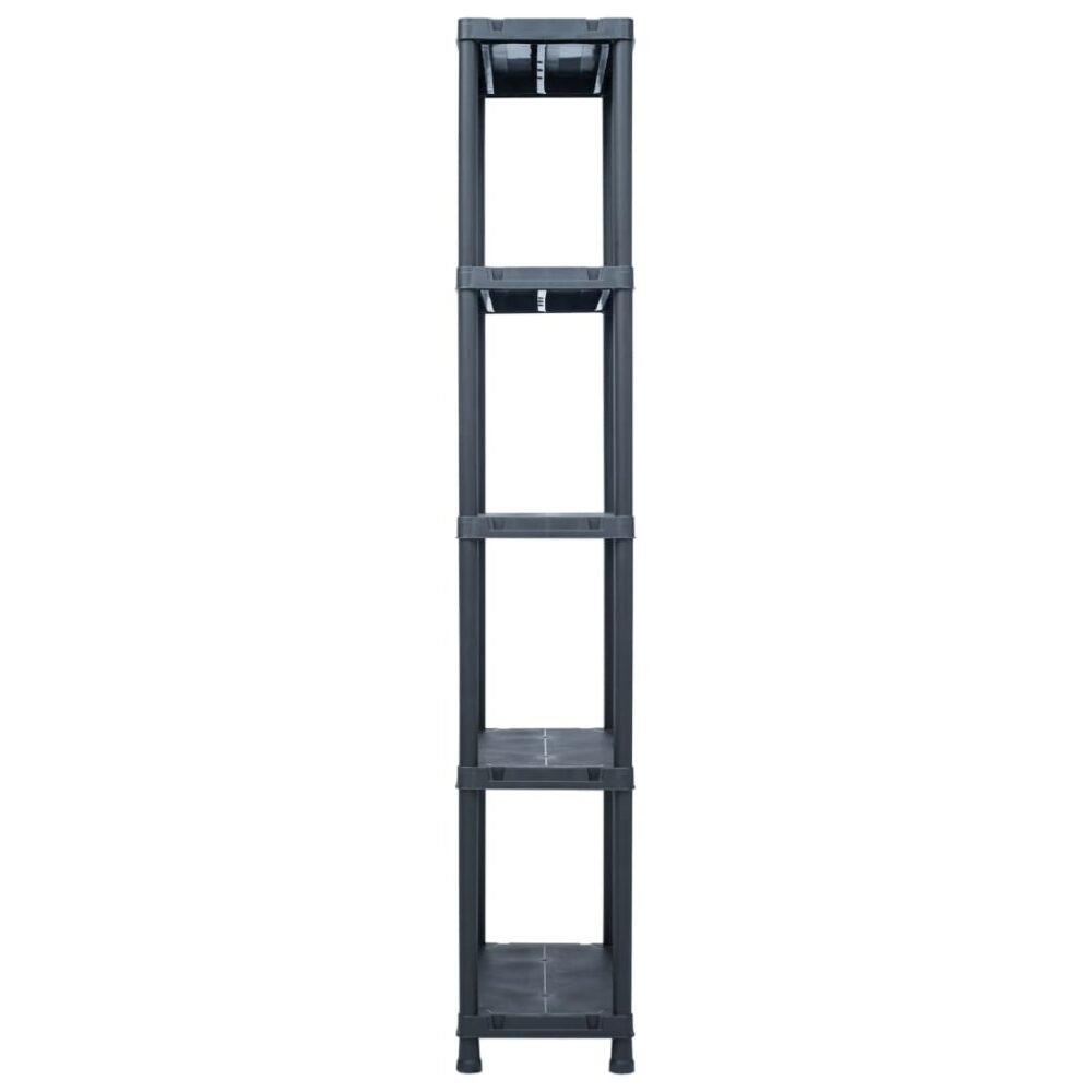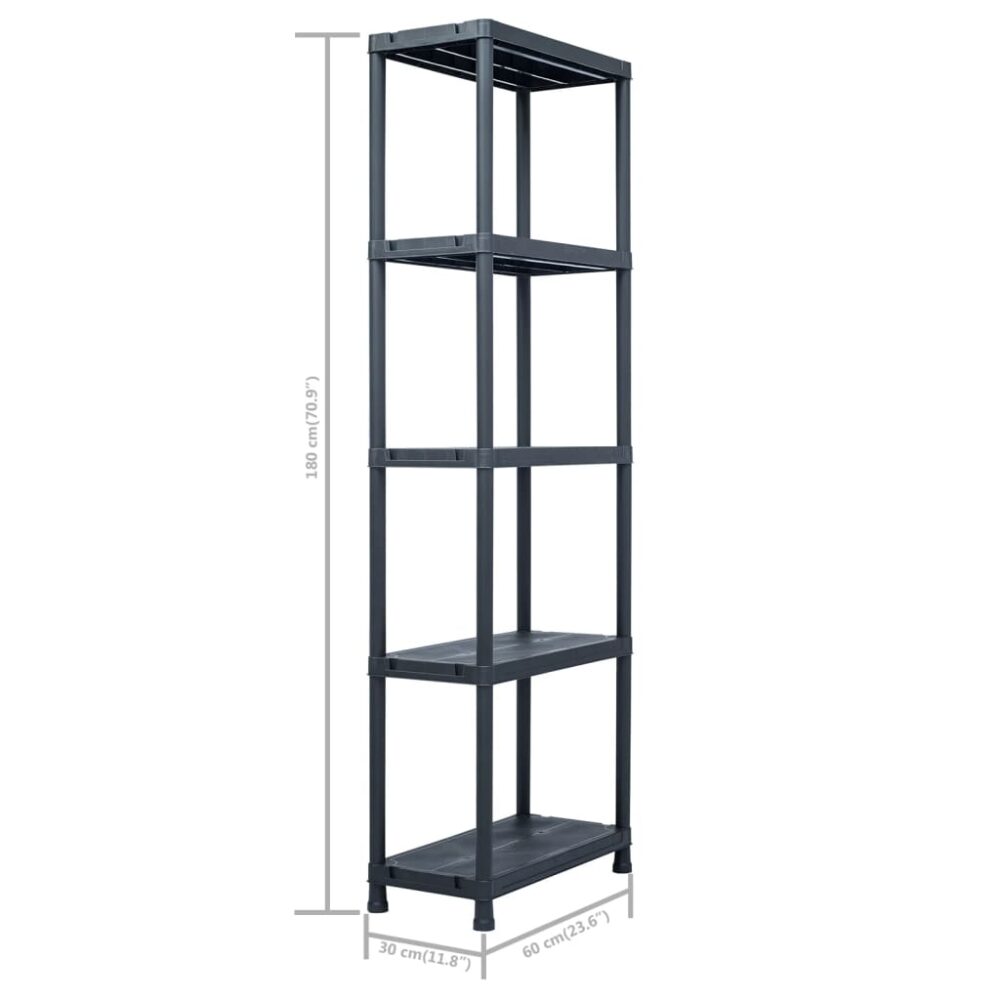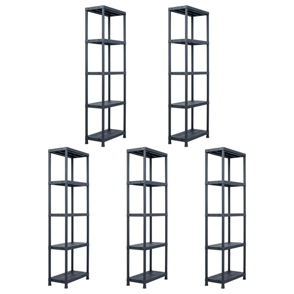 Esta estante de arrumação pode ser utilizada na sala de estar como prateleiras para livros ou expositor decorativo ou até no pátio como suporte para plantas, etc. A estante é feita de um plástico resistente e durável, portanto é muito fácil de limpar com um pano húmido e ainda mais adequada para ambientes húmidos tais como cozinha, casa de banho, armazém e cave. Com um design compacto, a estante aproveitará ao máximo qualquer espaço limitado. Com os materiais de montagem incluídos, a estante de arrumação é fácil de montar. A entrega inclui 5 estantes de arrumação.