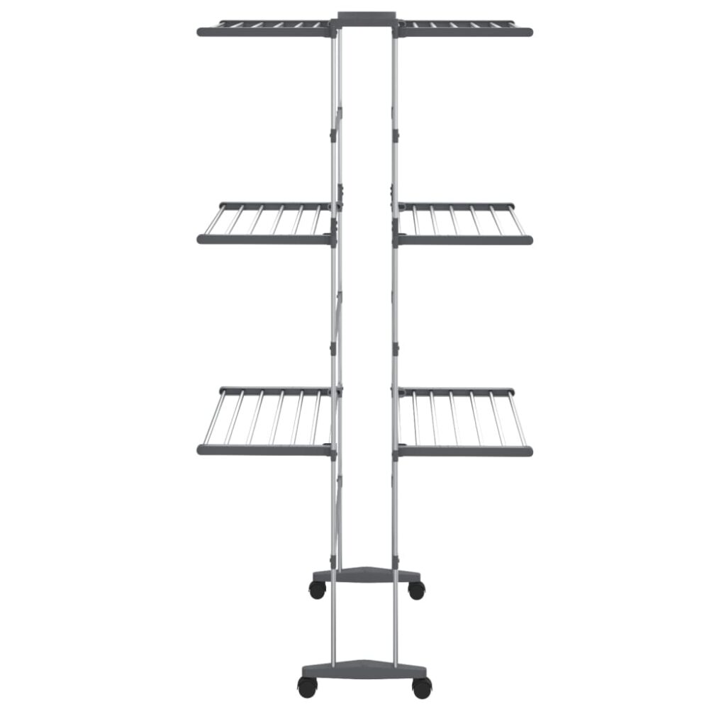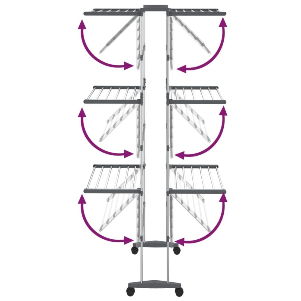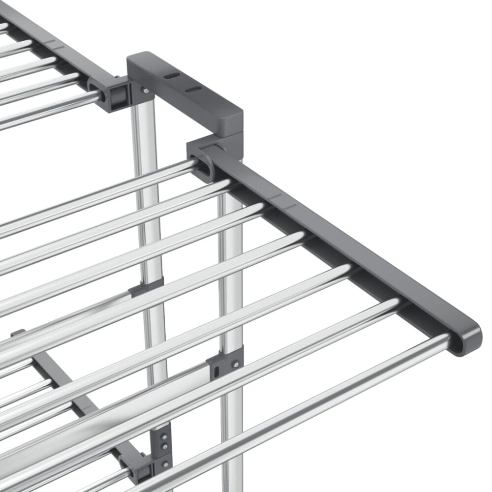 Este estendal de 3 prateleiras é a escolha perfeita para famílias com espaço de lavandaria limitado! Estrutura estável: a estrutura de alumínio do estendal assegura robustez e estabilidade.Design dobrável: uma vez que cada uma das prateleiras do estendal pode ser dobrada individualmente, o estendal pode até ser utilizado apenas de um lado se for colocado diretamente contra a parede ou o radiador.Fácil de mover: graças às suas 4 rodas, o estendal pode ser deslocado até mesmo quando está carregado de roupa.