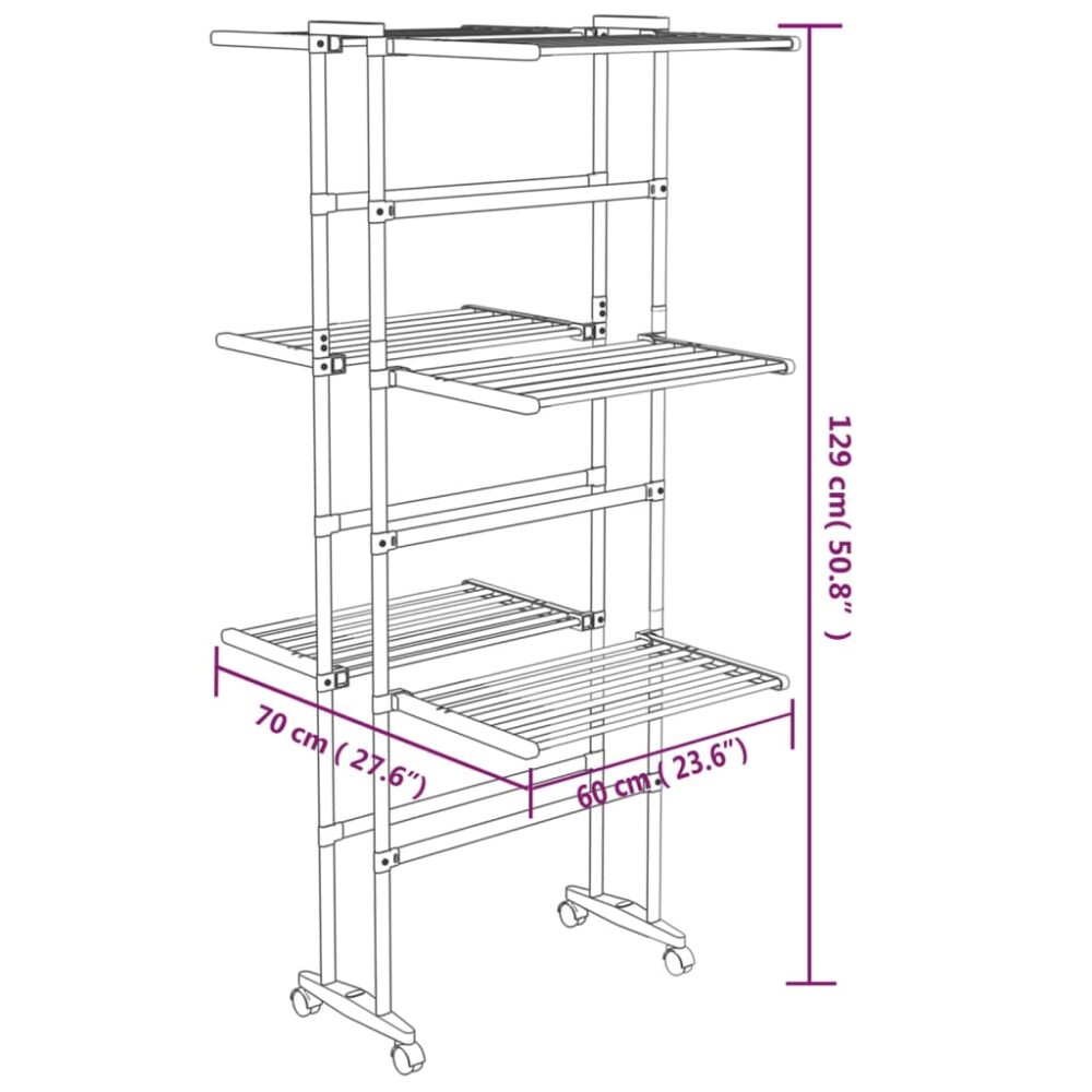 Estendal com 3 prateleiras/rodas 60x70x129 cm prateado - PORTES GRÁTIS