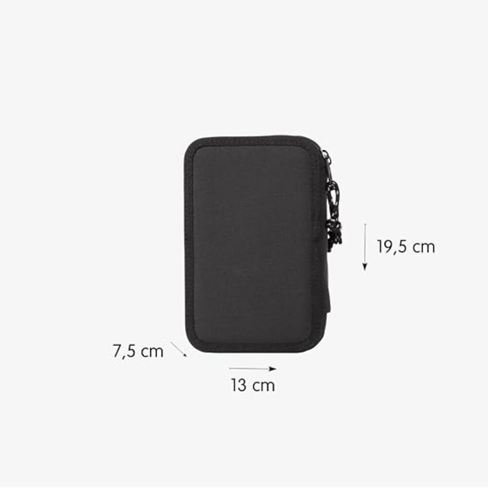 - Tecido traseiro ‘ripstop’: leve e resistente a rasgos e rasgos. Utiliza uma técnica especial que tece fios grossos de reforço em intervalos regulares num padrão cruzado. Composição do tecido: exterior e forro interior de poliéster. Medidas: 19,5 x 13 x 5 cm.