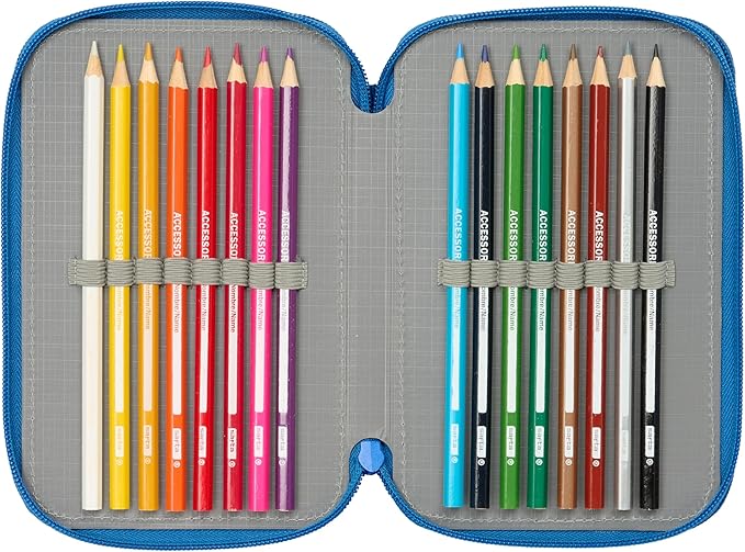 - ESPAÇOSO E LEVE: Contém 37 peças: borracha, lápis grafite, caneta esferográfica azul-vermelha, apontador, régua azul, gravura e semicírculo (1º compartimento). 16 lápis de cera de madeira (2º compartimento). 14 marcadores coloridos (3º compartimento). Alças de puxar para facilitar a abertura. Medidas: Largura 125 mm. Comprimento 55 mm. Altura 195 mm. Capacidade 1,3 L. Peso 0,44 kg.